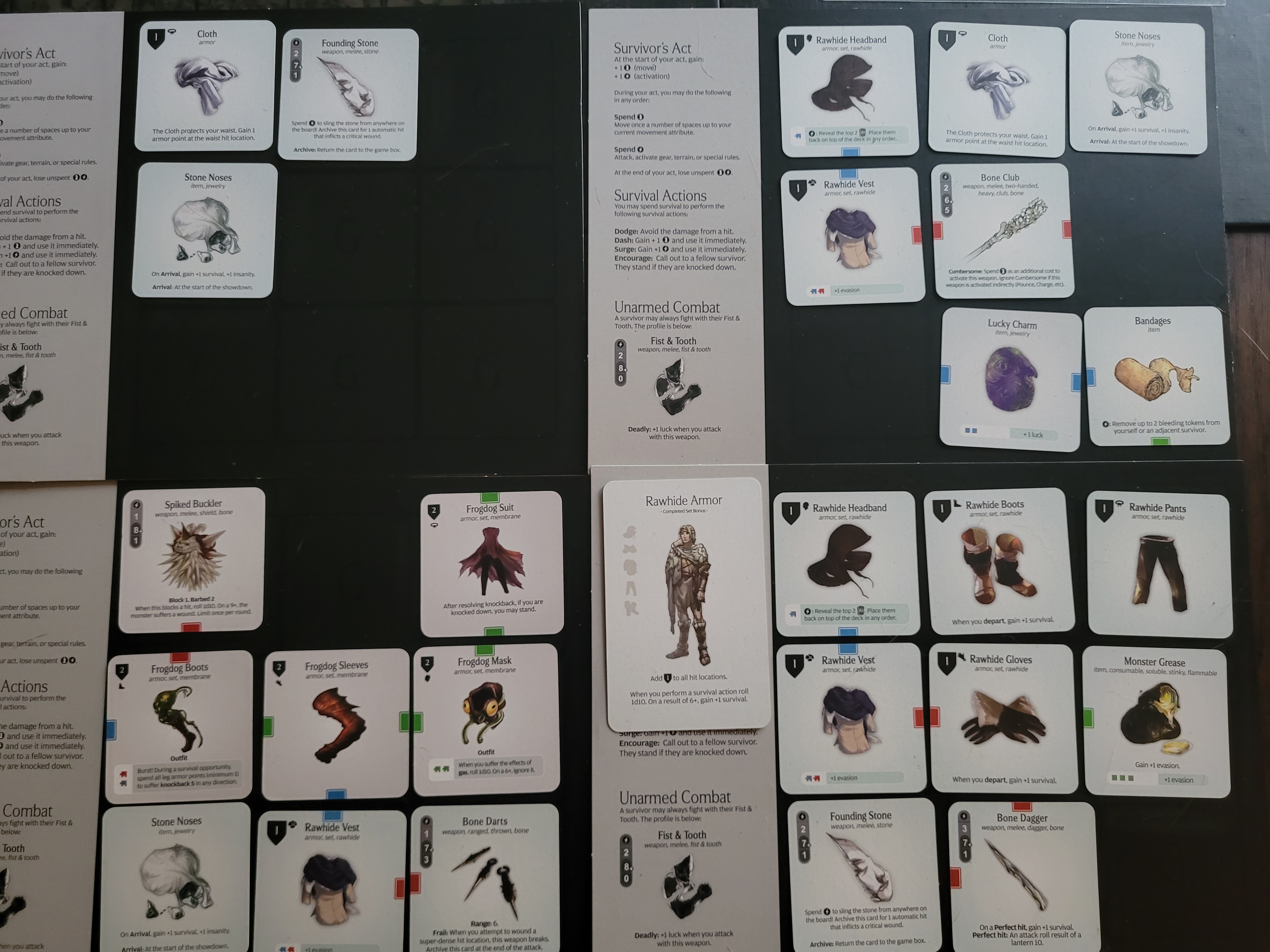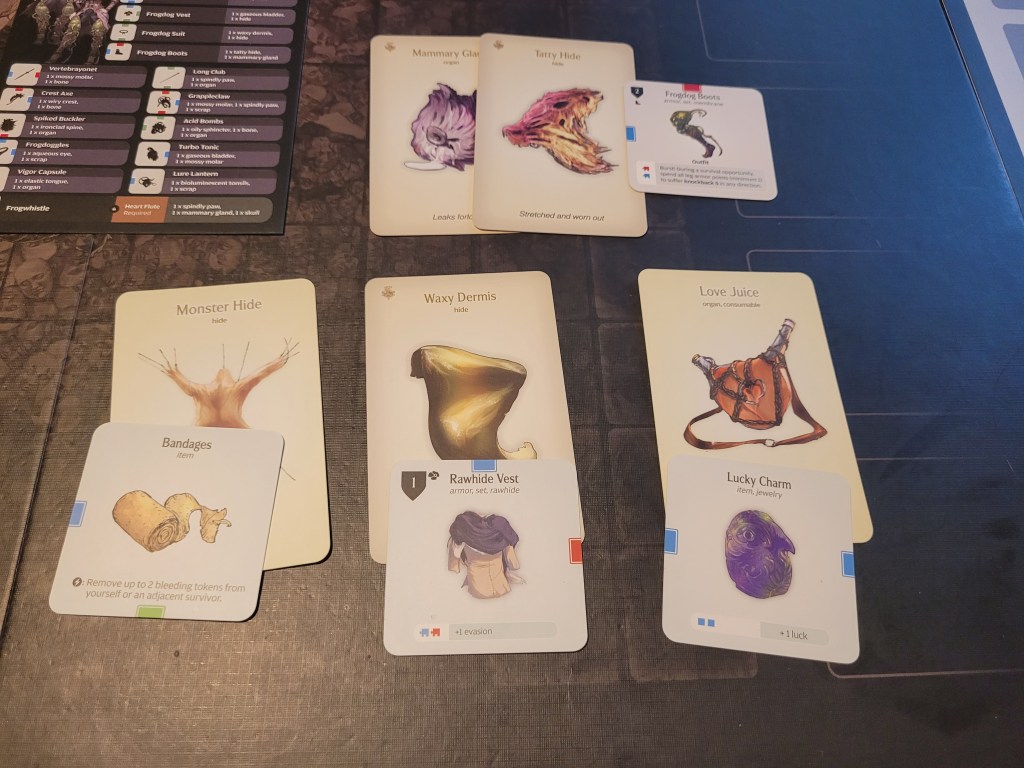 Finally I build another rawhide chest, bandages, a luck charm and frogdog boots before setting up the gear grids.