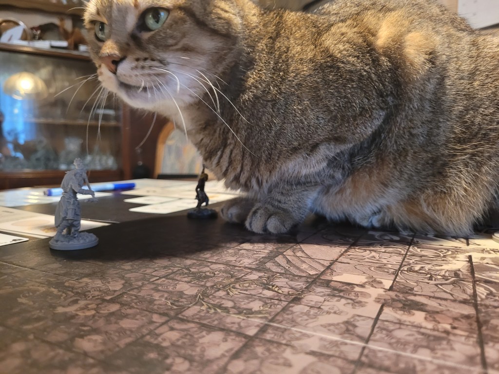 Thalas dashed in with the bone club, hit and wounded the Butcher right of the bat, knocking it down and granting everyone a courage. What a great start to the fight proper! Bone darts only hit a cleaver, but Ragnar’s dagger hit three more times and wounded twice even! Wow!