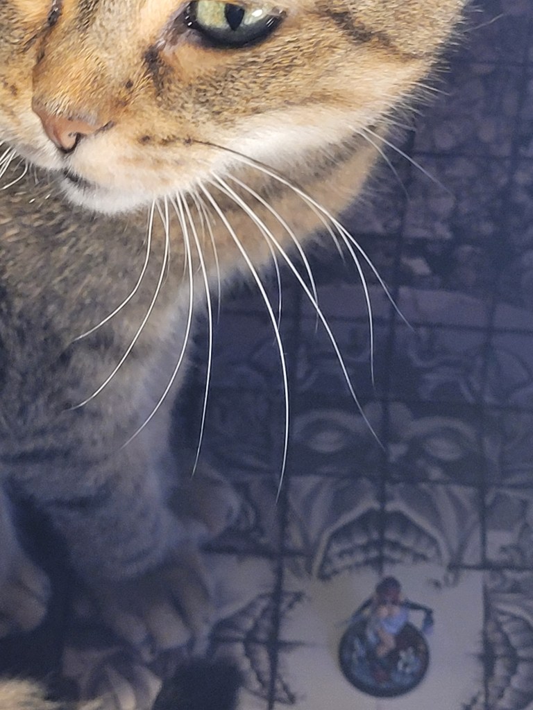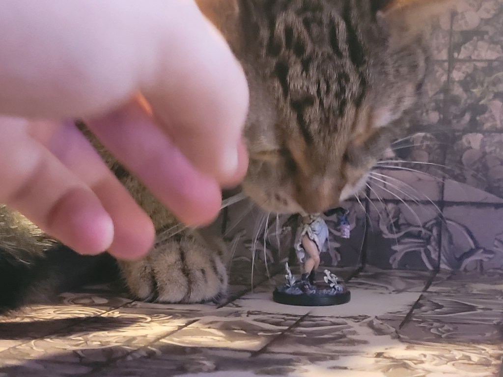 As I am still trying to get back into painting more regularly, I am struggling with brush control a bit. Which ultimately led me to remove an excess of paint from Elsbeths right eye with the help of a knife blade and paved the way for her blinded eye – which, given her nature as a straggler, felt very fitting.