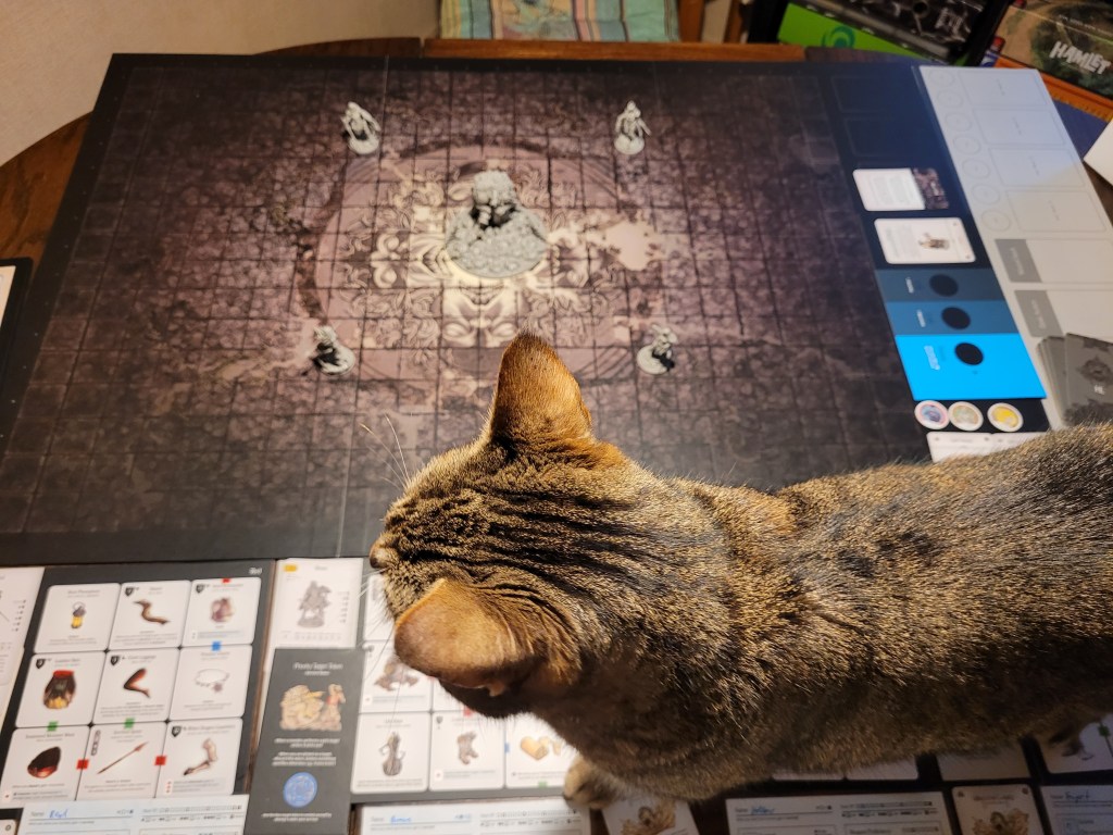 But to help you make an at least slightly more well-informed decision: Besides of what I have showcased here today – a fight against a vignette monster, 4 unique characters with special models and a story with 8 possible outcomes – you get 6 rare gear cards and a new weapon proficiency.