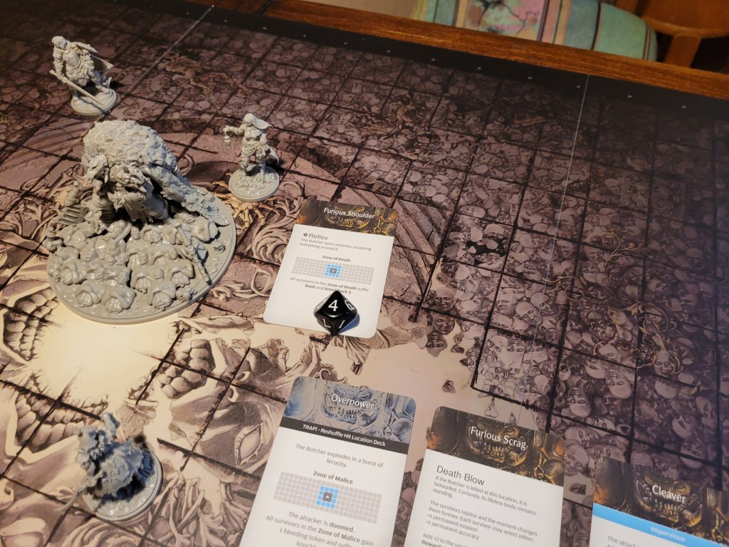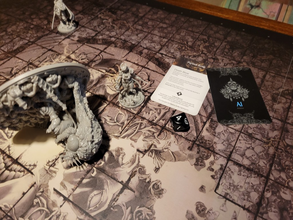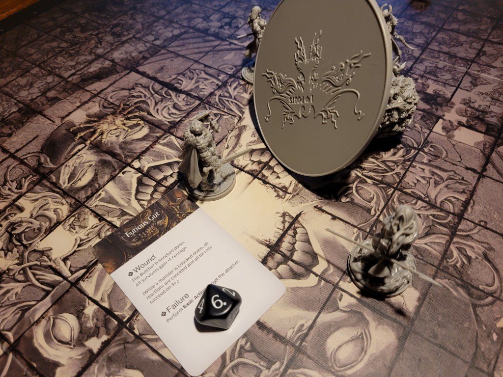 Before she could stab the Butcher, Forgot dashed away from the monster, just in case Red managed to hit all 3 times. But she merely hit twice and wounded on none as she would still needed an 8+ to deal any damage.