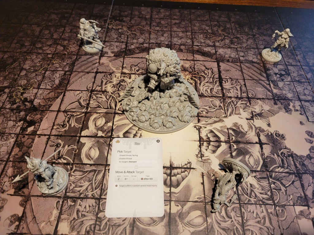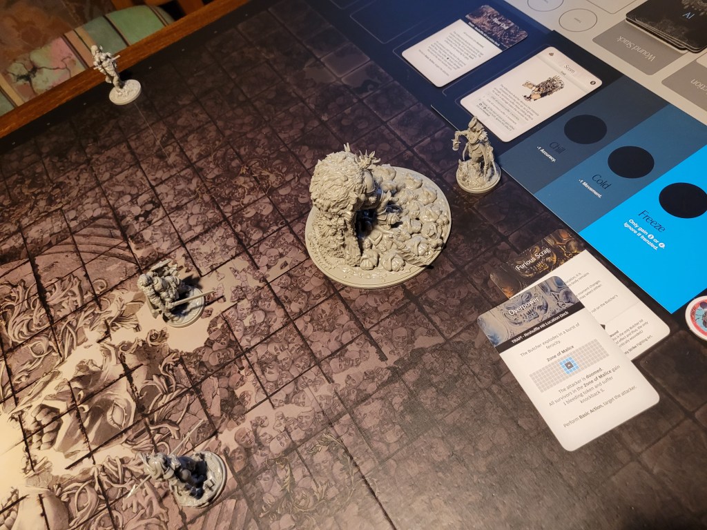 I always seems to get a bit caught off guard by how volatile this and Butcher fights in general can be. This vignette, especially if you make frequent use of Hollow’s armor set can feel a bit on the easy side but then again, the low statline of the Wishseekers and the fact that you can’t surge has quite the impact on the tempo of the fight. This time around we got dealt very little brain damage and as soon as people begin taking Frenzy trauma regularly the monster escalates very noticeably. Scorn applies -1ACC first, then -1MOV and finally you are allowed to only move OR activate during your act.
