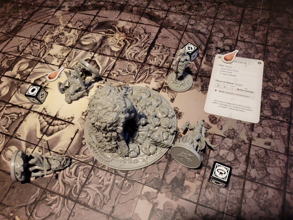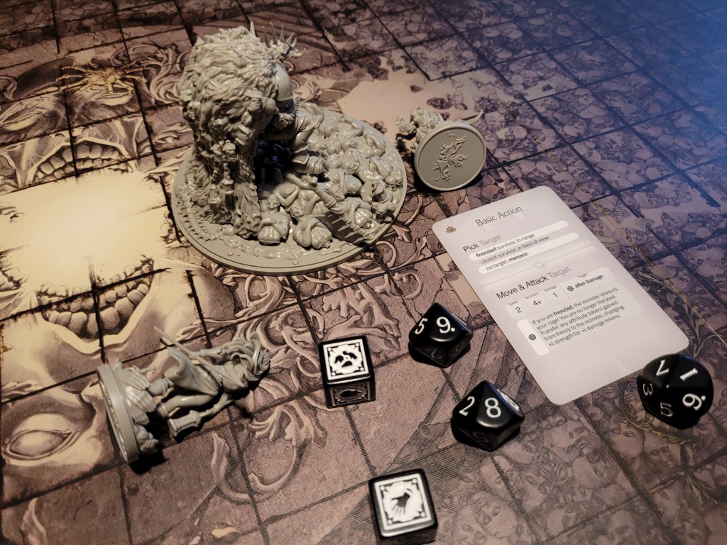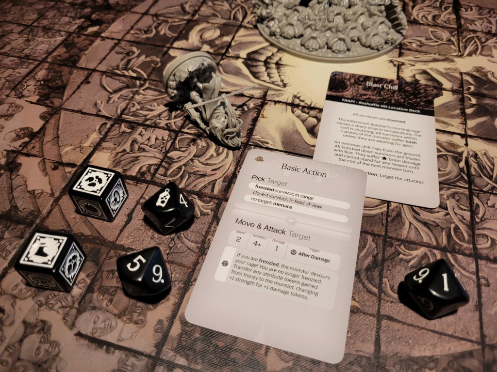 Scorn – this trait adds escalating effects to the fight the more +1 DMG tokens the monster gets during the fight. These tokens will be gathered by basic attacks made against frenzied survivors, removing the status from the target and gaining their tokens.