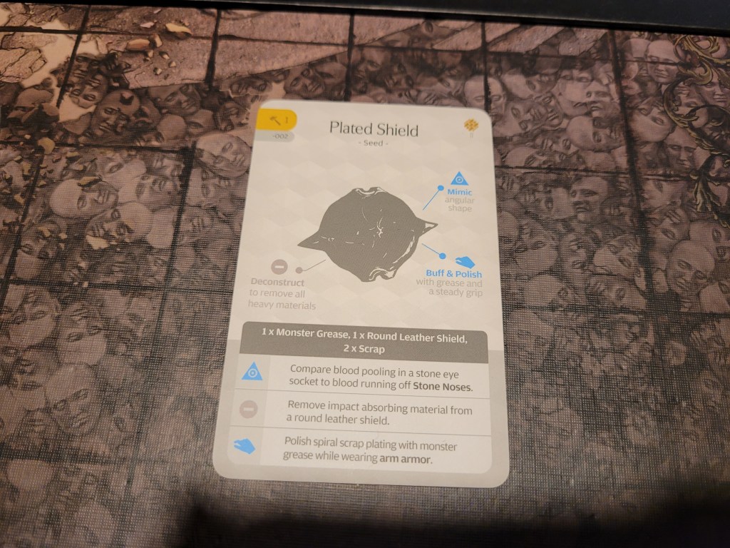Annoyed Ragnar took the lead and we stumbled upon a Faceless Statue (basic HE06). We did have Sculpture (I) so we gained 1 understanding in addition to a couple of survival each, this triggered Insight on Lelia (+1ACC), Mars (reroll) and Ragnar (+1EVA). We also gained 3 more seed patterns.