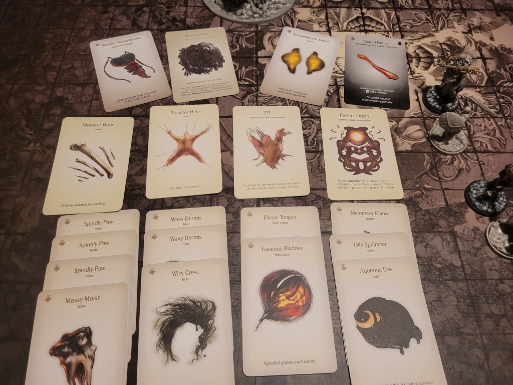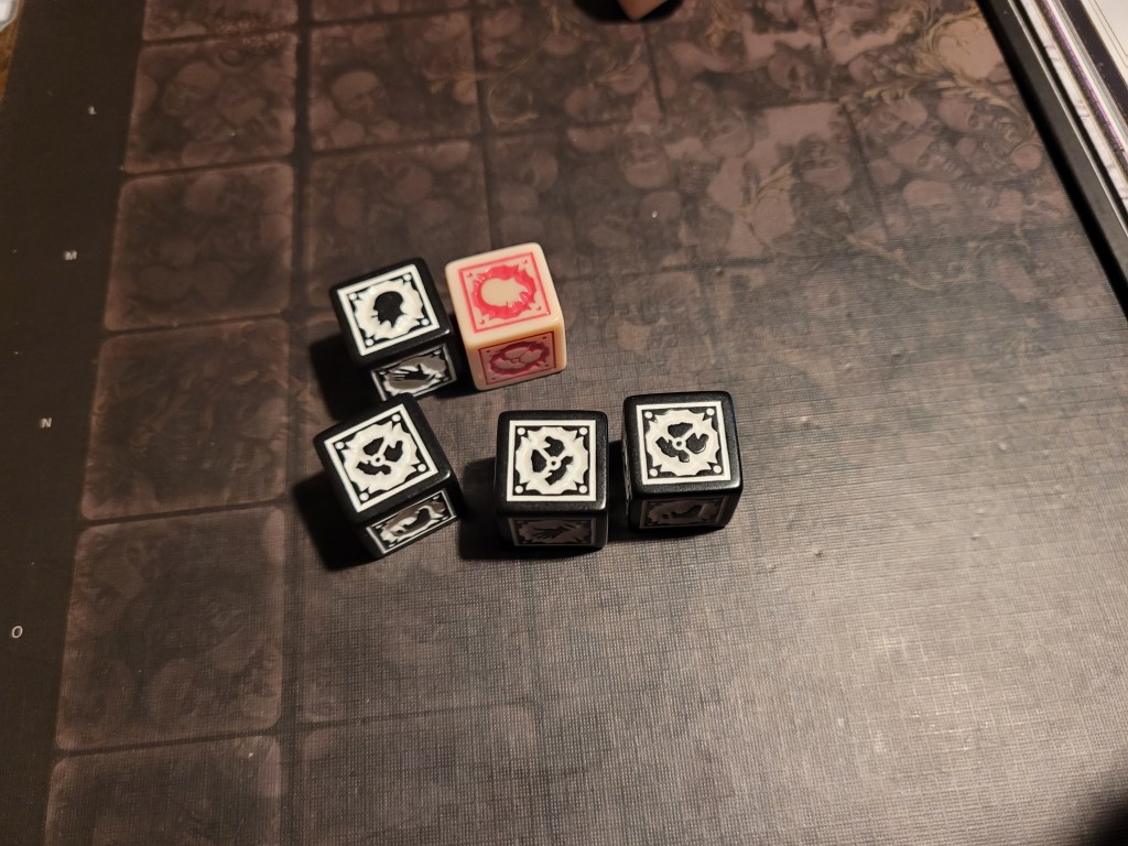 But, as always, we had to deal with the settlement event first: Weird Dream – another one of those “not the worst one” type of draws. I was playing the game alone so I stuck to taking the 3 insanity one everyone. Maybe I’ll write something up in the future, but I didn’t prep anything for this event right now.