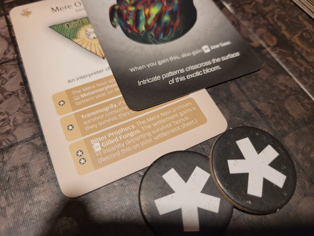 I also got to play another 3 Lantern Years with the PotStars settlement we have going on the side, and we got out first 2 People of the Stars – one blessed by Absolute, one by the Gambler. But as I should be focusing on Bogstop for now I’ll stop it here. There is a jellyfish in the room that needs to be dealt with, and deal with it we shall.