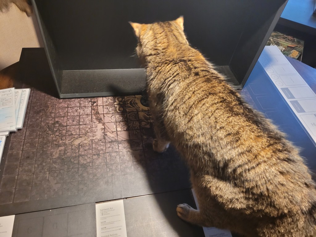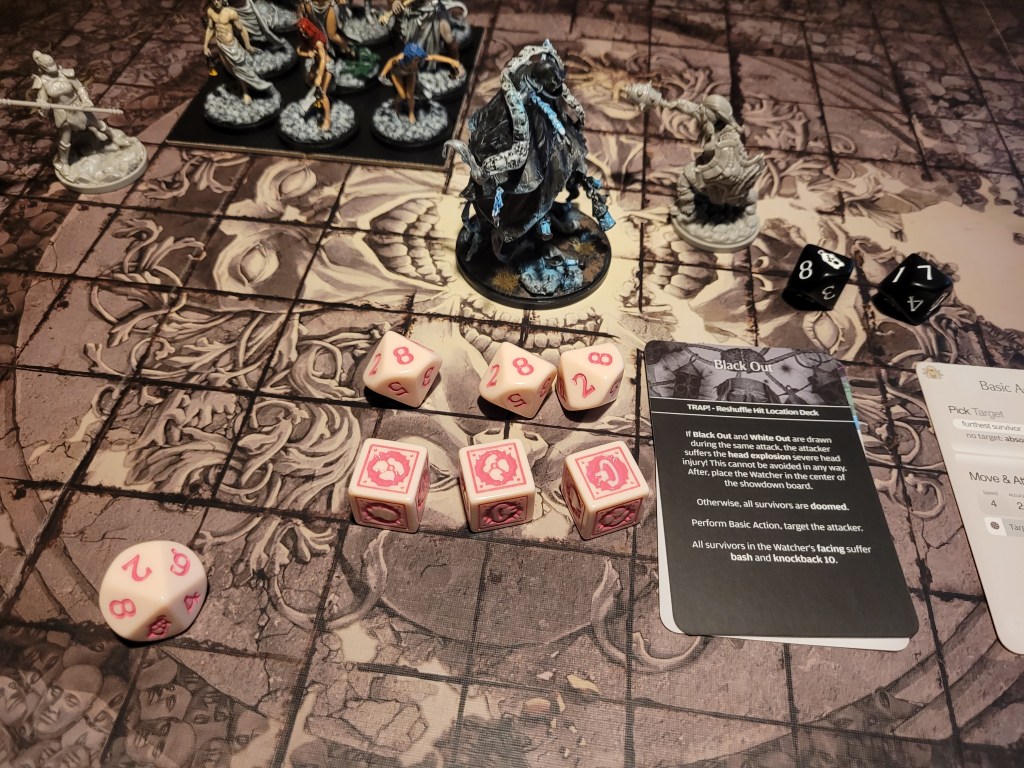 Defeating the Watcher we felt some triumph as all living survivors gained +1STR! But only a heartbeat later we are plunged into darkness by the event: Blackout.
