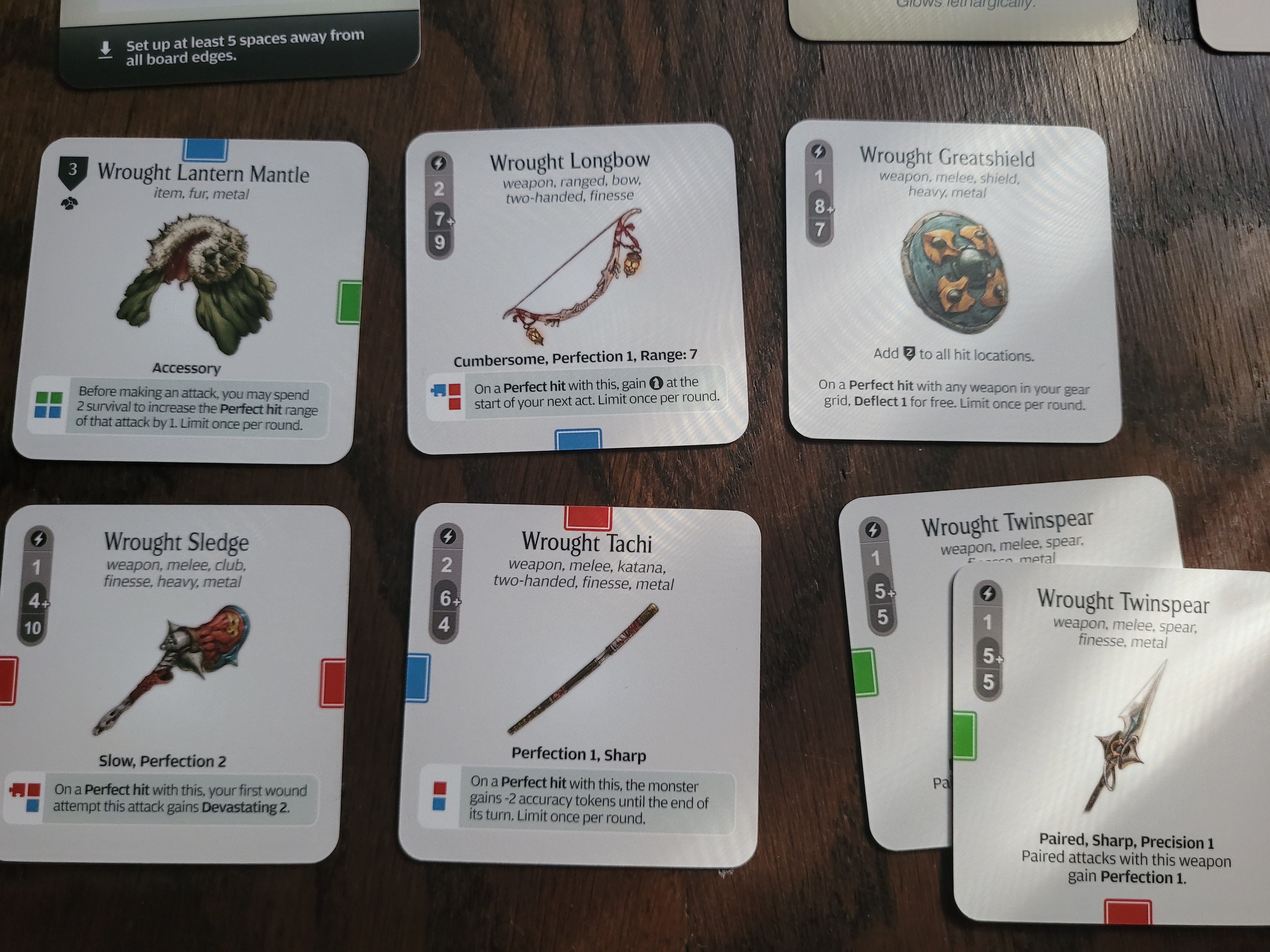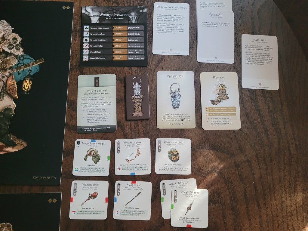 All these items range from good to incredible (possibly busted – the Wrought Sledge – basically anything with devastating on it – is incredible). Besides getting a new keyword to work with – Perfection X, more on that in a moment, we get a mid to late-game katana, bow, spear and club to add to any current campaigns, that are not reliant on any specific monsters. That alone is quite the boon.