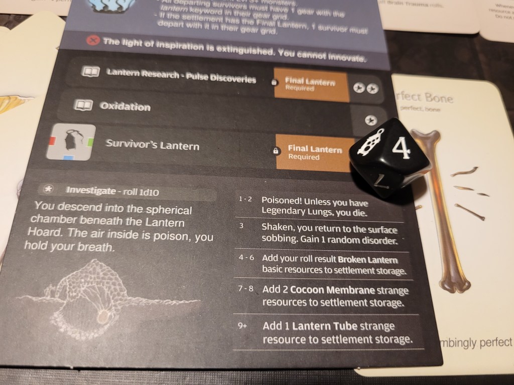 This did also kneecap my plan in certain ways, as Calystea who was insane, could no longer depart for a hunt this Lantern Year. She was one of important ones to head out as she could have gained 3 points of cleaver spec from this sending her well on the way towards the novel mastery. And just like that she would have to find a newbie to replace her for this now, as all established people outside of the last hunting party had 4+ insanity.