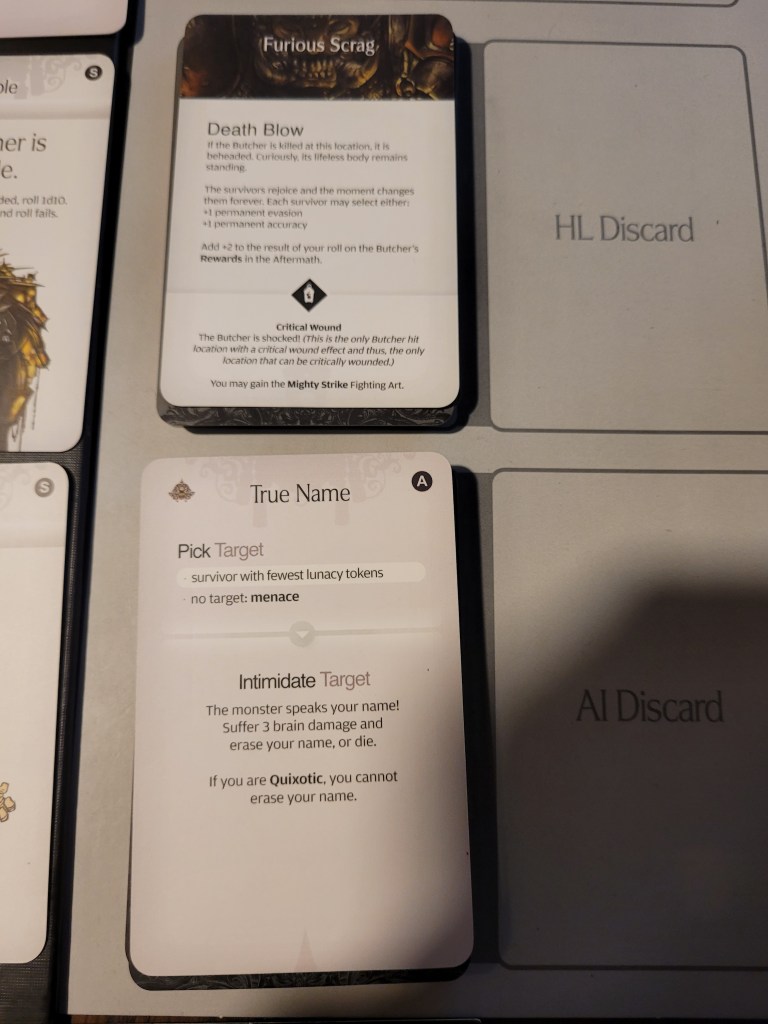 As I was shuffling the settlement event deck I was thinking that I might just come at the Butcher bearing the big guns this time though. I wanted to send the people who were just on the hunt. If I could. I had been a while since I won this fight.