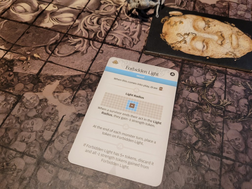 11 (12) cards remaining, the monster discarded Wild Carve and played Infinite Kick instead, setting its sights on Cleavelette. She ran away a few spaces further. The follow up was Devour Lantern, switching its attention over to Celestine. After going down an unexpected rabbit hole I found out that this – thankfully – did not archive the Final Lantern as the monster hit her twice for 3 damage each, removing all 6 remaining survival she still had had as well. A rough turn for the worse and it hadn’t even been the final cards for the turn.