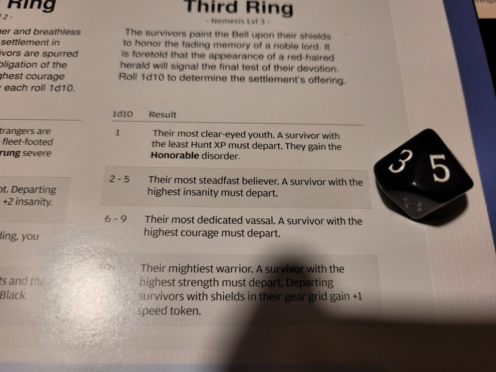 With only 1 survivor at 3+ understanding we got to roll a measly 1D10+1, and got a 5. Jerryn gained Aichmophobia (D) which meant he couldn’t use swords (or any other bladed things) whilst he had the disorder. Luckily he wasn’t forced to throw Wrath away, like stuff like Vestiphobia (D) would have him do.