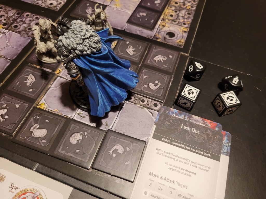 Celestine stepped up to the Black Knight, feeling good about her chance to hit. On 3+, 4 hits were scored (2 from the regular attack and 2 extra due to Legendary Lungs SFA) and that unfortunately found the trap.