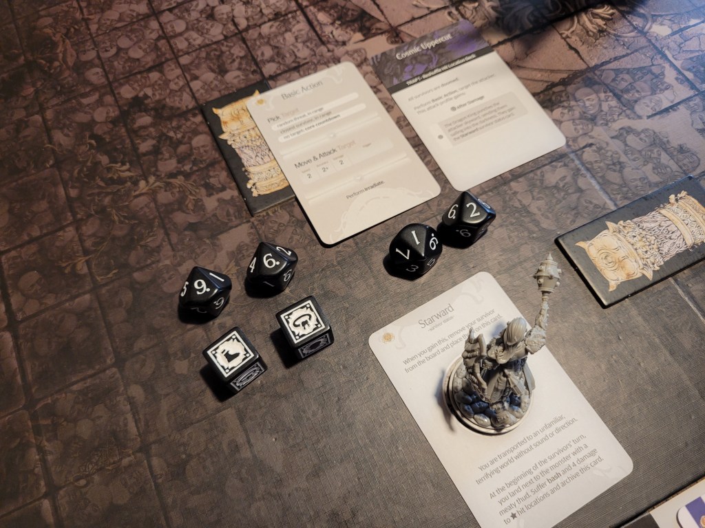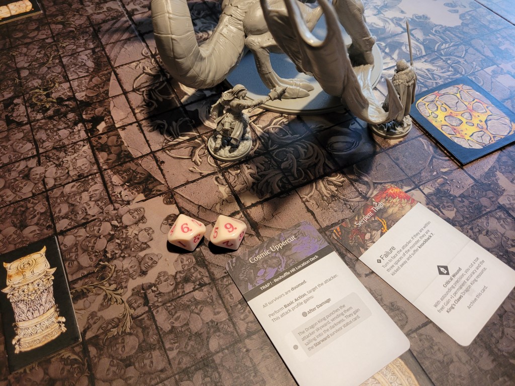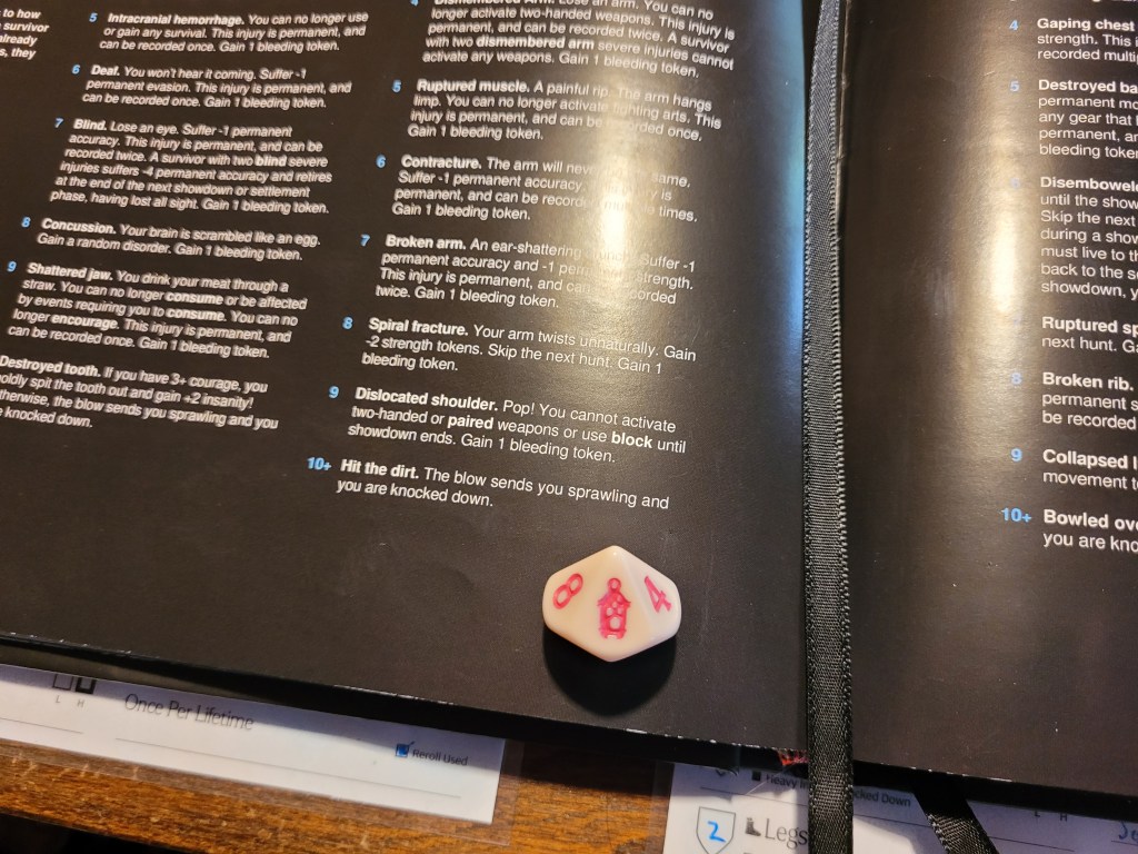 Cairne then went on the attack again, hitting only once, but at least he turned it into a wound. He did have to spend 2 survival not to get bitten on a reaction, but that was all it needed to keep him safe.