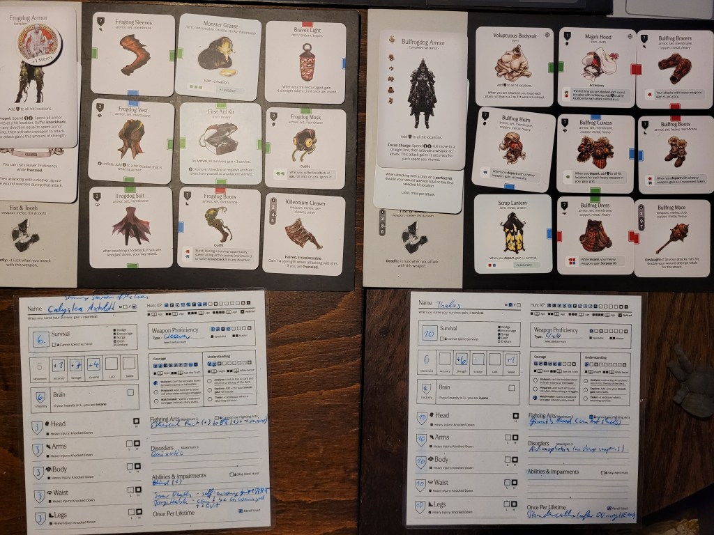 Calys suffered intracranial hemorrhage (no survival gain or expenditure) and Ghurt a warped pelvis (-1LCK). The other injuries luckily didn’t stick.