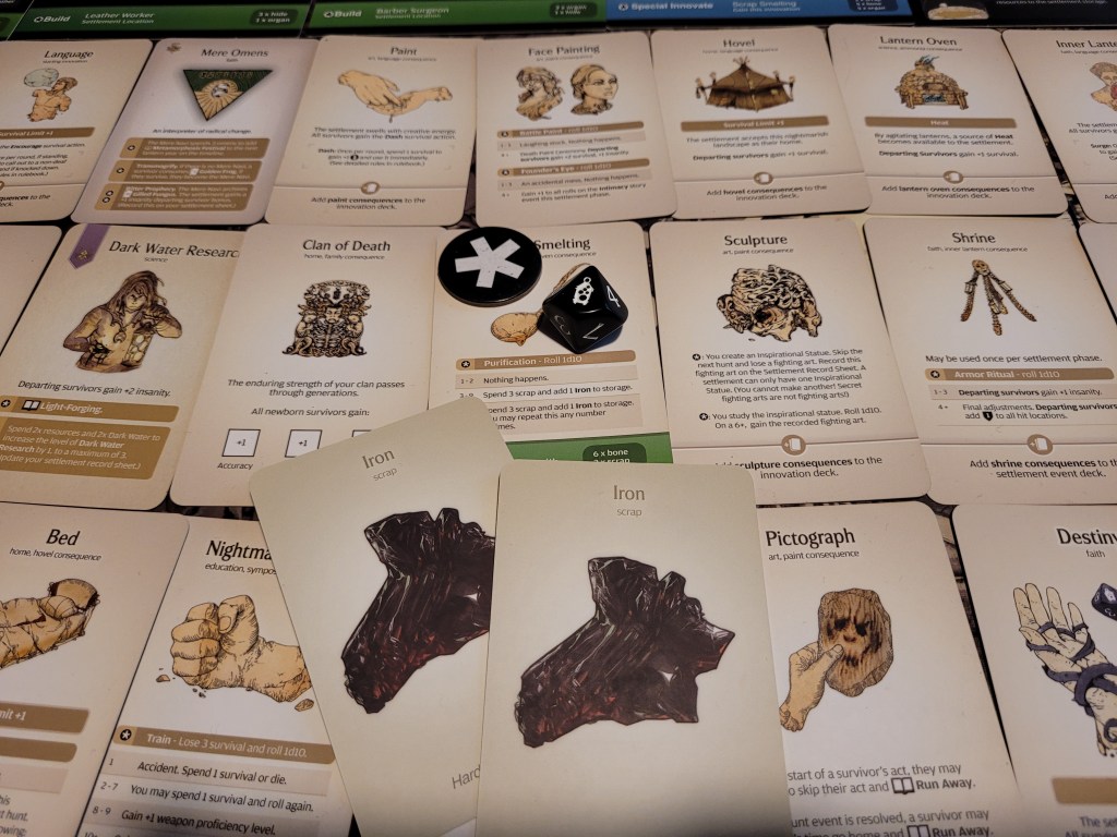 Finally, if the survivors have the Thunder Maul rare gear present in the showdown, the survivor carrying the weapon gains the survivor status Second Forge, and with it an opportunity to counter Blacken via a story event in the rule book. Otherwise, as in our case, the card is archived.