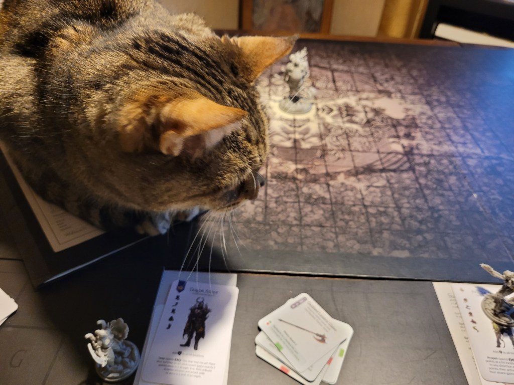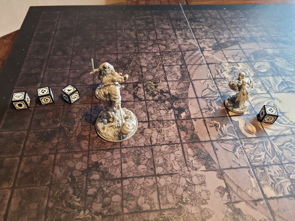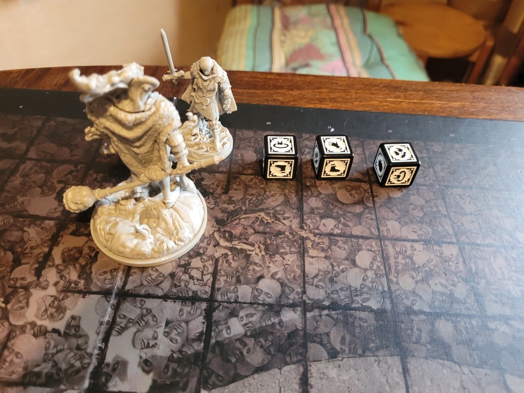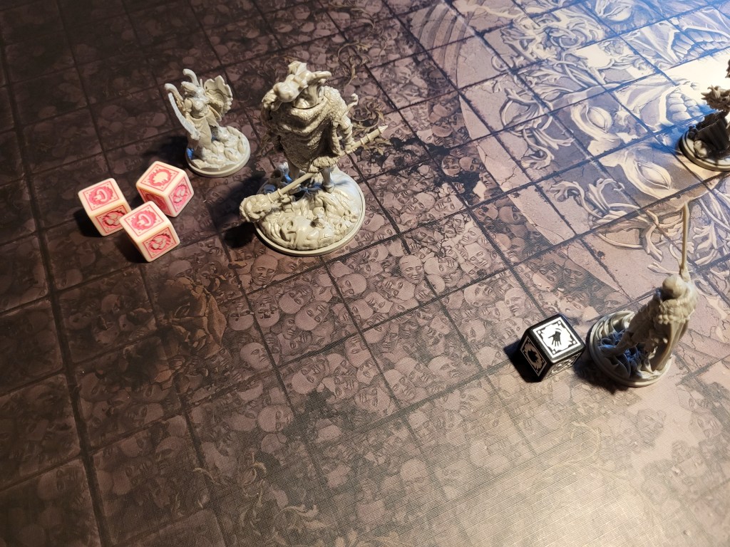 He just about hit the monster, and even crit it, but also drew its ire, becoming the priority target for this transgression. Keeping his final +1STR-token around for a dodge, he ended his turn.