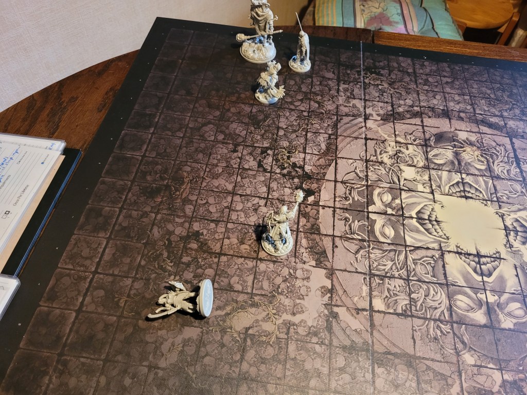 Blacken finished the Monster’s turn, dealing additional damage to Ghurt who, after knockback. was too far away to charge back in at 4MOV.
