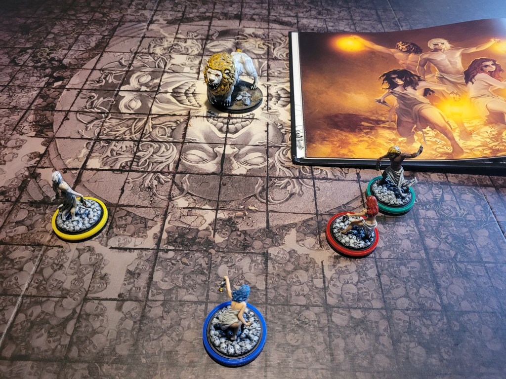 I had managed to crit the monster giving it a -1MOV-token, which meant the follow up basic on the roar did not reach anymore, and with the 6 knockback she was unable to reach the lion once it was down to 2 cards. I got looped!