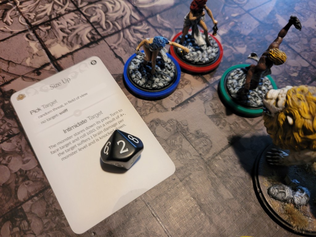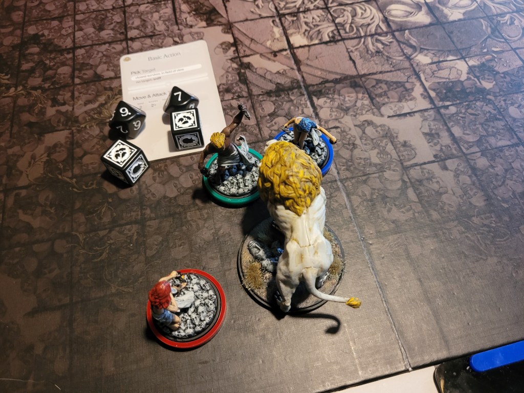 Lionar was the only one with a clear path to the monster, so he ran after it, hitting once again, this time successfully wounding. We had it right where we wanted it – down to basic action!