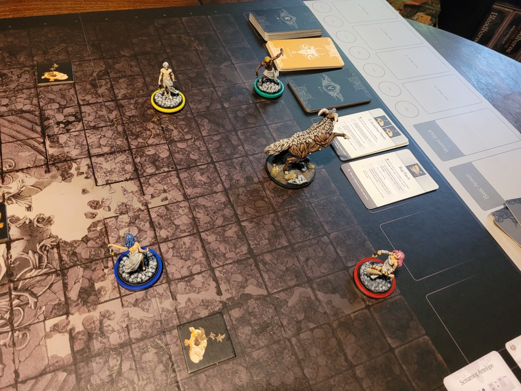 Lionar still needed to wound for weapon proficiency, so I mainly used this round to move away and go after more Acanthus. Knowing what was left in the deck made me feel safe as we spread out ready to do some gardening.