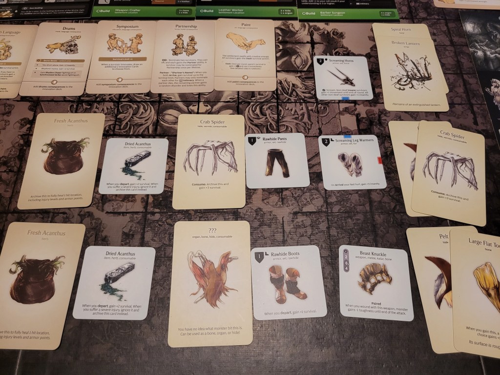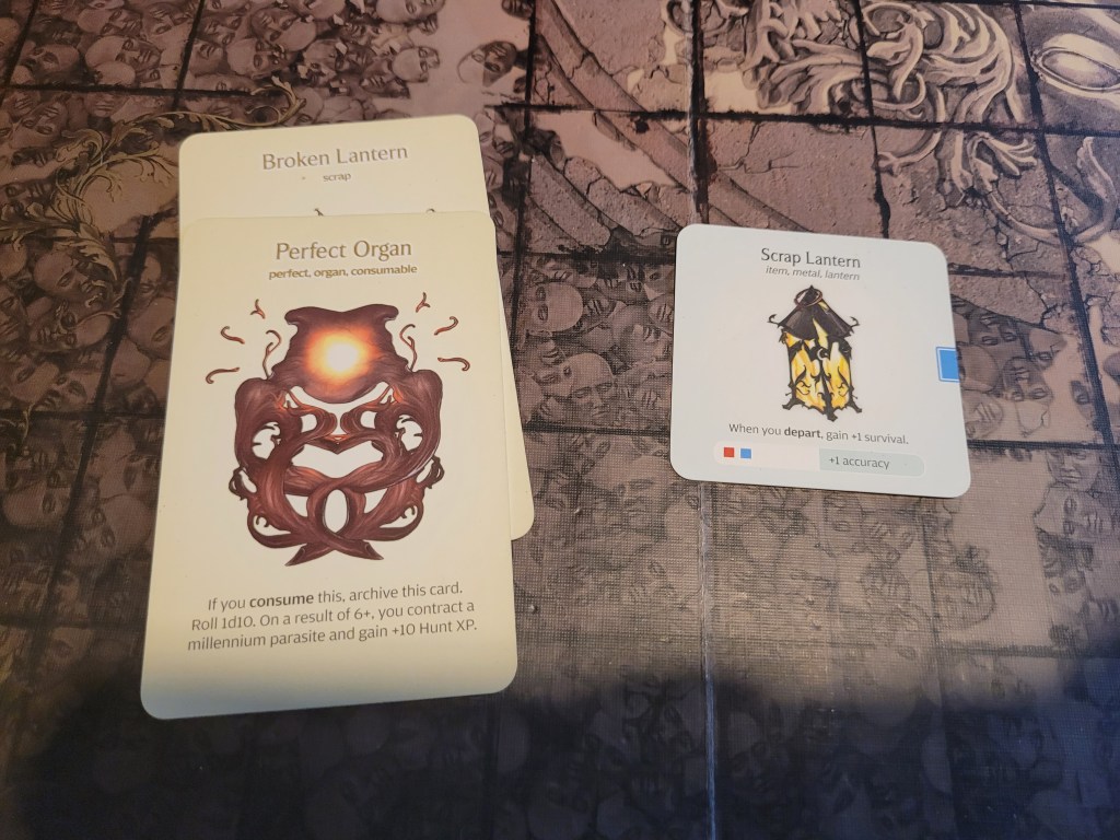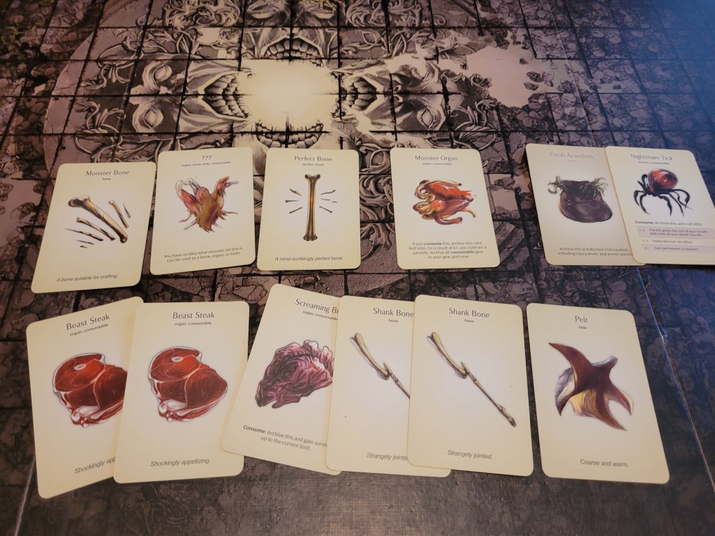 Calys ended our turn by searching the Dead Monster. Rolling high we got to chose a quarry monster to get a resource from.
