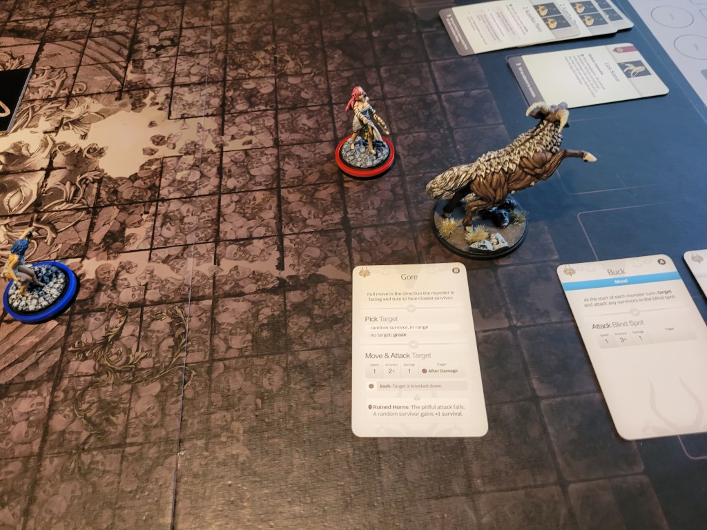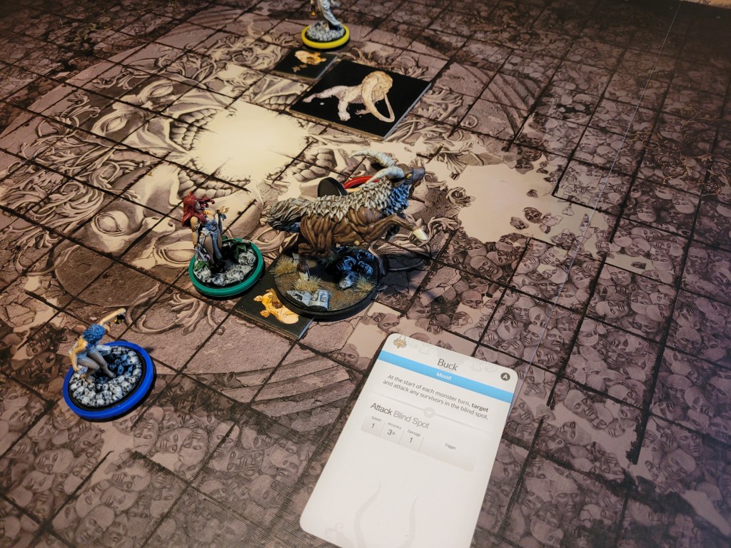 6 cards in the deck. A mood – Buck is put into play. The monster was now hard-coded to attack survivors in its blind spot at the start of its turn.