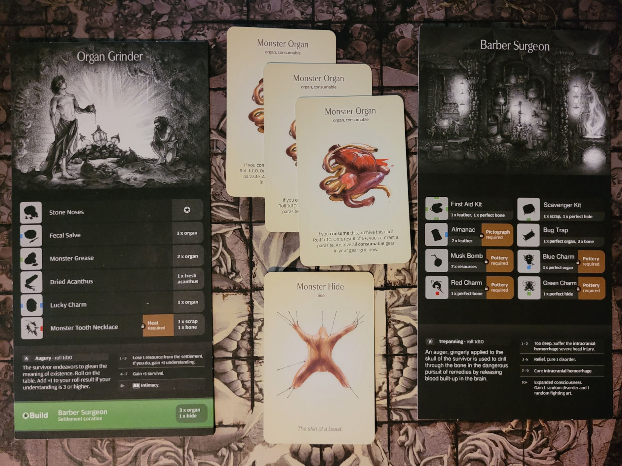 Overall the Organ Grinder is an important location in any settlement and will be frequently visited throughout any campaign. The only reason why it might not be as important early on is because of the general lack of weapons and armor leading to a more reliable form of survivor-death in your fights. But if you have a surplus of unused organs or acanthus, it should be well worth investing in a Monster Grease or five. Especially if your newest generation of survivors got hooked on that Frogdog-stank.