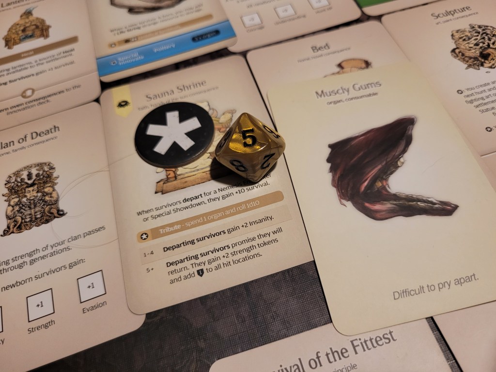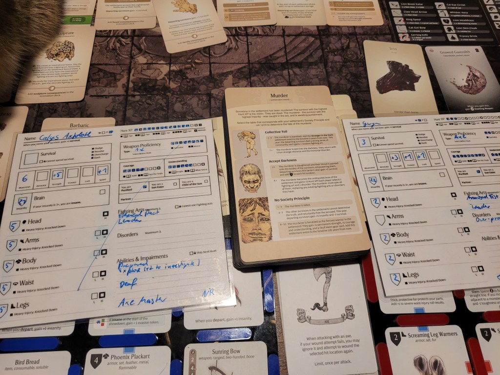 Our final endeavor was then used to do Nightmare Training with Cassandra. She used up her 4 survival to gain +1 proficiency with her bow, putting her to 4 of 8.