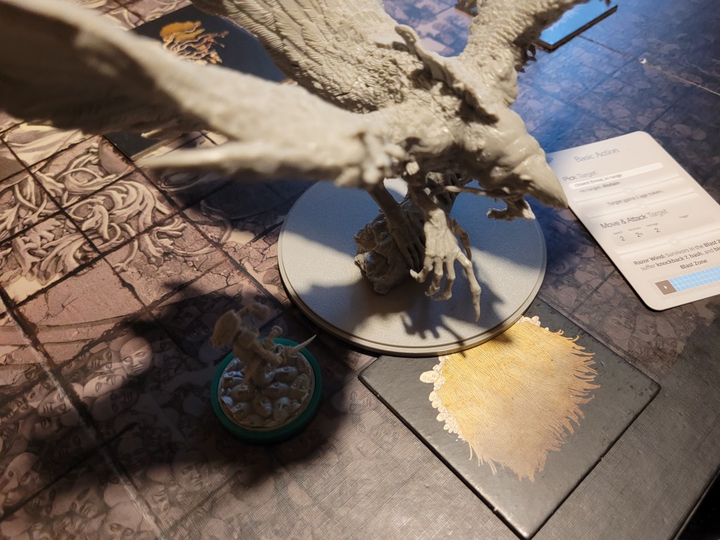 As our turn arrived Gwynevere could get another attack in, quickly drawing 4 more cards, wounding only the Displacement spot for 2 wounds. The damage she was dealing was steadily and noticeably winding down.