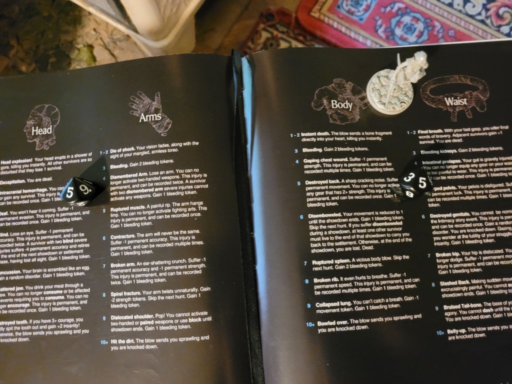 And just as I got scared that we were walking into another Bone Storm, we instead stood before a Jagged Valley (basic HE45). Which would prove to be MUCH worse. As we left the valley we were covered in un-healing cuts, and all survivors had to take 2 bleed because I did not typically carry bandages with me!
