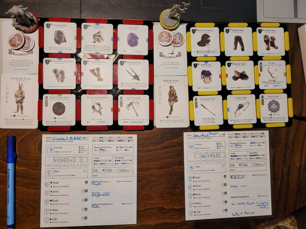Nobody aged, Stardust learned to be a bow specialist (I know I had left the card out next to the gear grids, but rest assured I did not use it) and we gained 4 basic resources and 1 Iron as a reward for this fight.