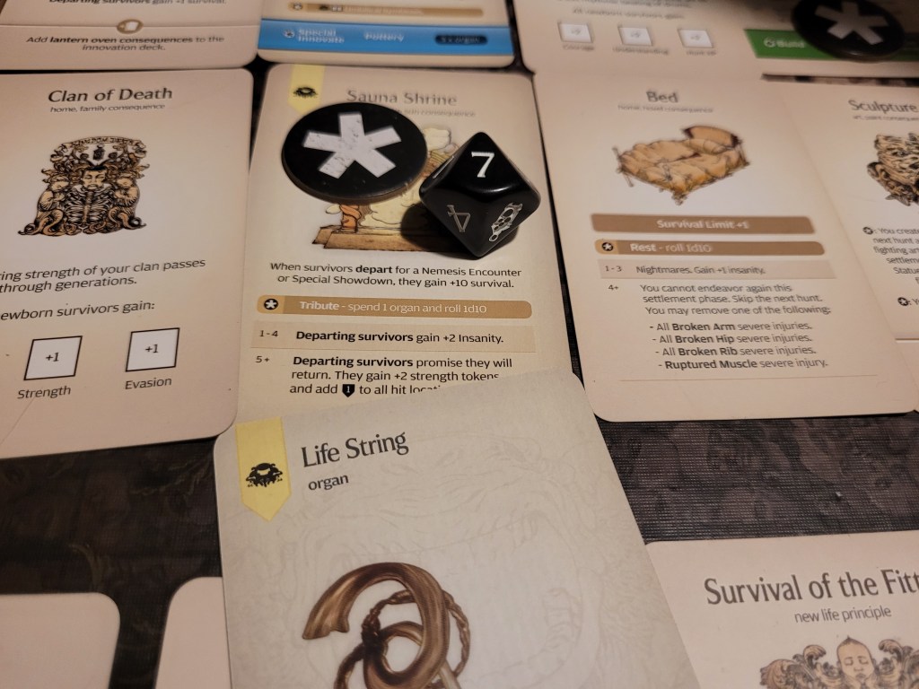 Finally we also got to roll on the rewards table and got a 5+2 – a 7. 1 more Fighting Art for each participating survivor!