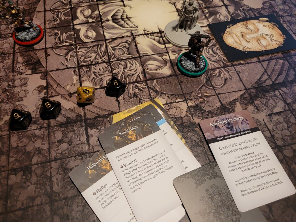 And Battle Tempo is given to each survivor and acts as a spot to collect tempo tokens on for the King’s Step event you can trigger via the Battle Pressure cards.