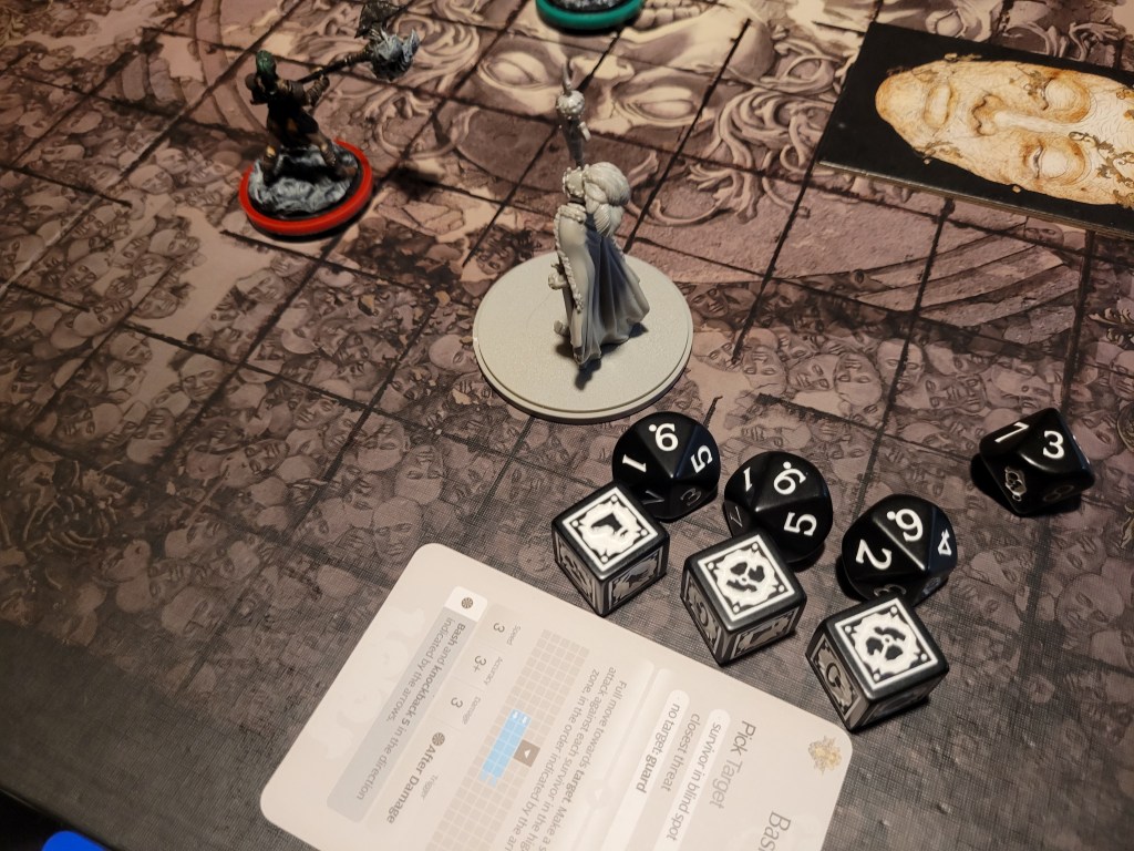 This turn Helios also used Overcharge and attacked after dashing in closer. 3 hits, meant 3 wounds over 2 of them. The monster did back away and into Moon, knocking her away as a result of the attack though.