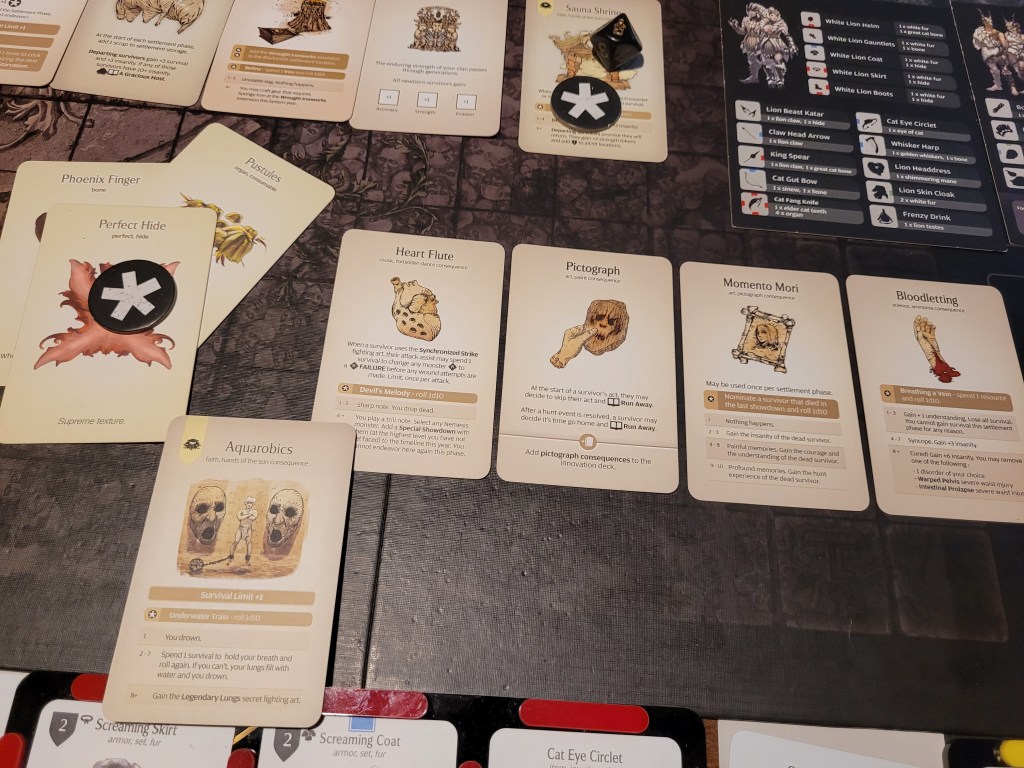 And with the Pelt we still had in storage we also crafted a set of Bandages. With these, 2 people would have the capability to remove bleeding tokens from others, which I couldn’t help but imagine would be important for Butcher Lvl3. (Generally speaking: I need to build more Bandages.)