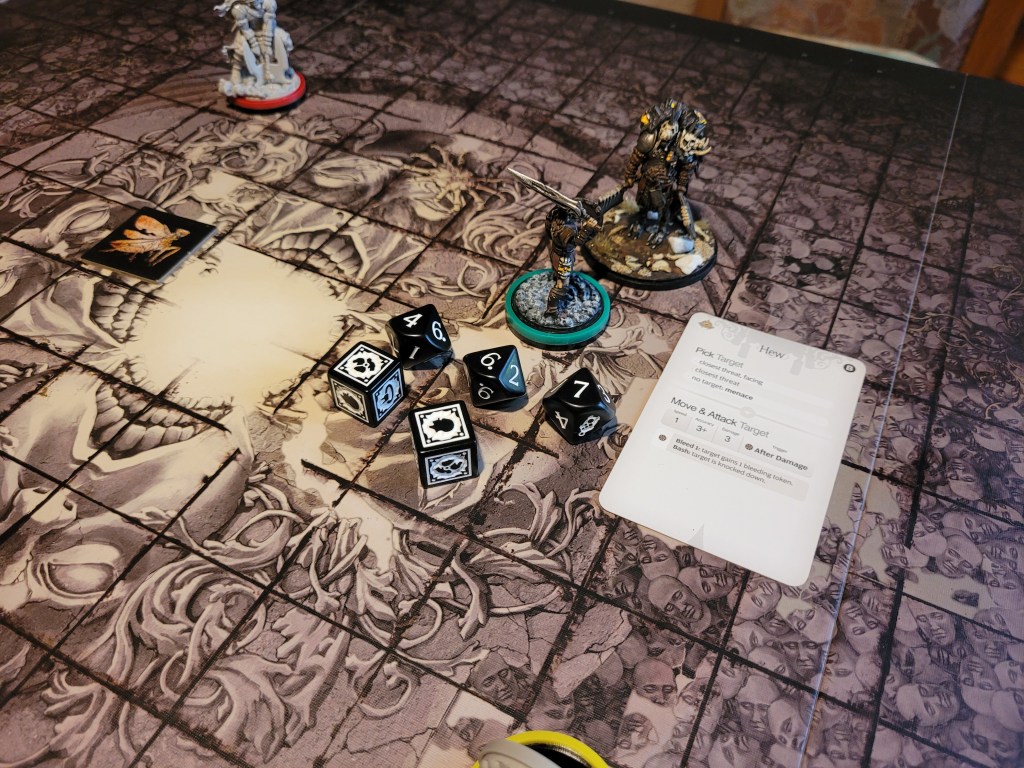 3 of 3: Hew again. Only one hit, but it was to the arms causing a severe injury: the arm got broken (7). We now also knew there was no more Gaze of Truth in the deck unfortunately.