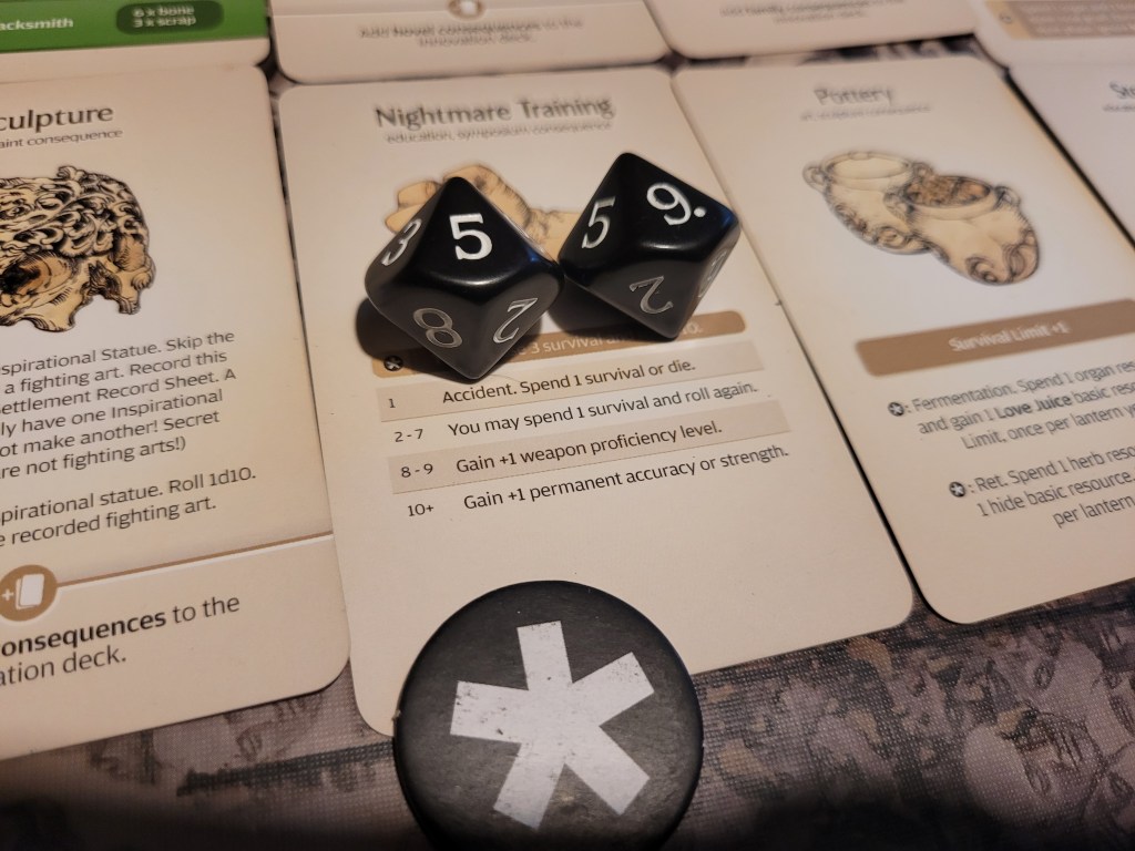 We also got to roll on the table and each survivor got to get another random Fighting Art.