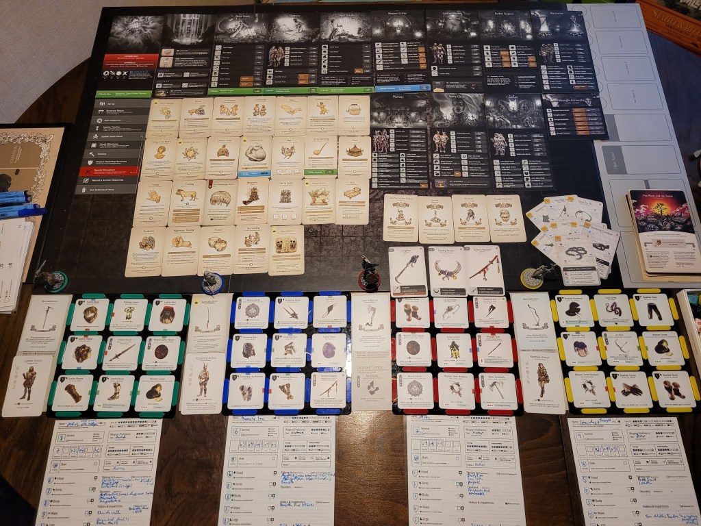Overall I think the gear grids and their matching colored rings mostly worked well for what I wanted to achieve. It has added more glare to the set-up, mainly due to the overhead lamp in that part of the room. I have also been starting to sleeve certain cards in my collections (For some reason my Hovel card got beat up? Due to being shuffled more often?), which introduces further glare going forward. Together with overexposure on a lot of the white cards, I have to say that I am still figuring this part out. And I will have to put together a work around of sorts for Season 3 in any case. This feels like I need a third table.