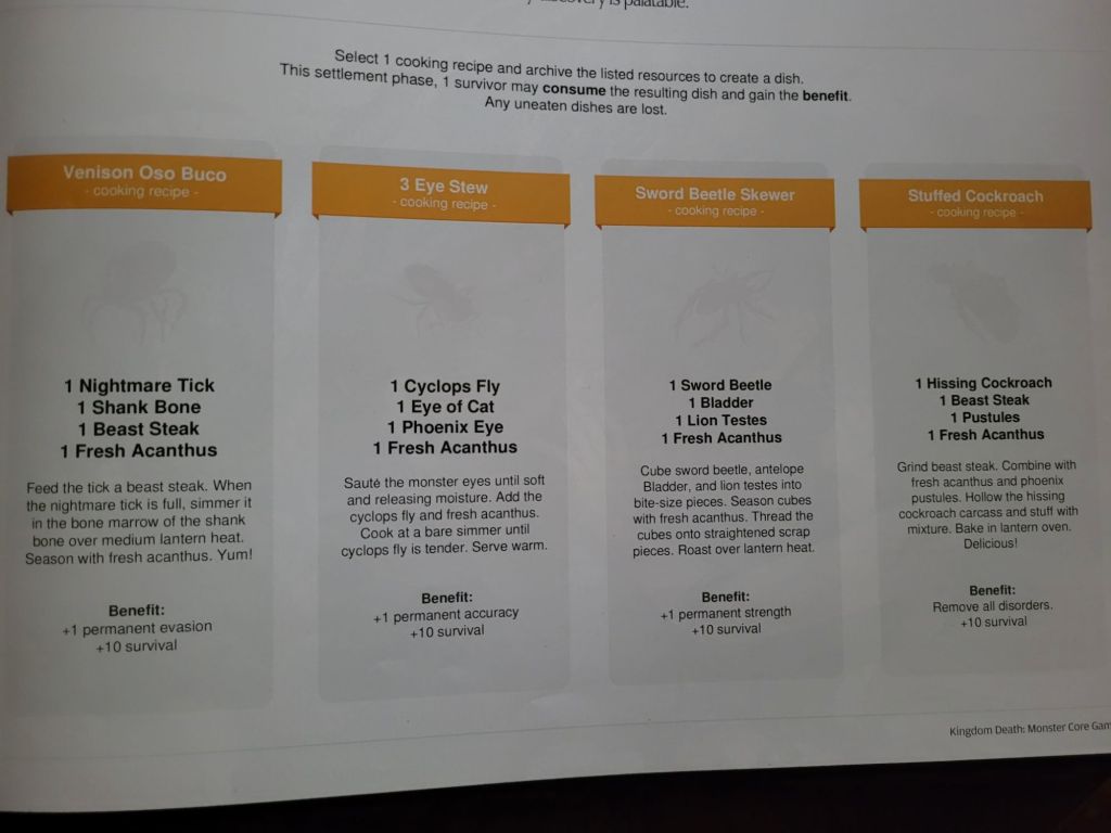 Whilst it does feel like you need to jump through more hoops to get these recipes going, they do generally provide more oomph as well. Also keep in mind that all of them can be augmented by Salt for an additional +1STR, and monster resources can be substituted by the lope indomitable resource Prime Beast Steak included with the recently released Wanderer Aeneas – which does mean you can make almost all of these just with the lope as a basis as the recipes are not reliant on the monster it stems from being in the campaign, but rather just you triggering the Cooking event on the innovation. They are functionally considered additions to the event itself and thus always present.