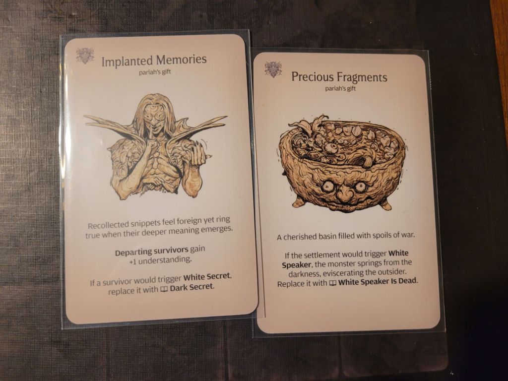 Finally, you might have also noticed that the Pariah Innovations not only give a Departing +1 Understanding – but they also replace all White Speaker related events.