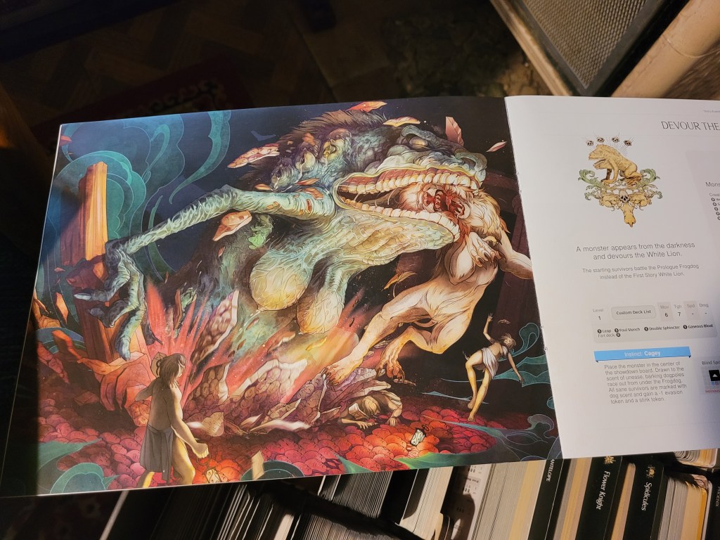 For Lvl1 and the prologue it starts the fight with 4 traits in play, most of them just explain some keyword thankfully, like Leap – which sees the Frogdog jumping on the Mammoth Leaves (T) strewn around the fight.