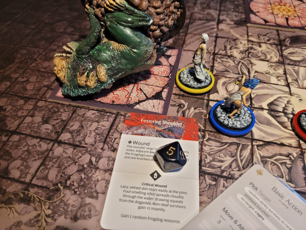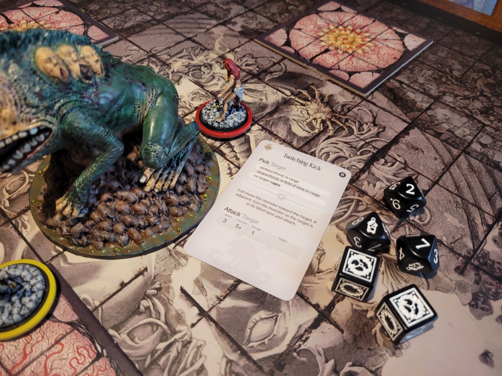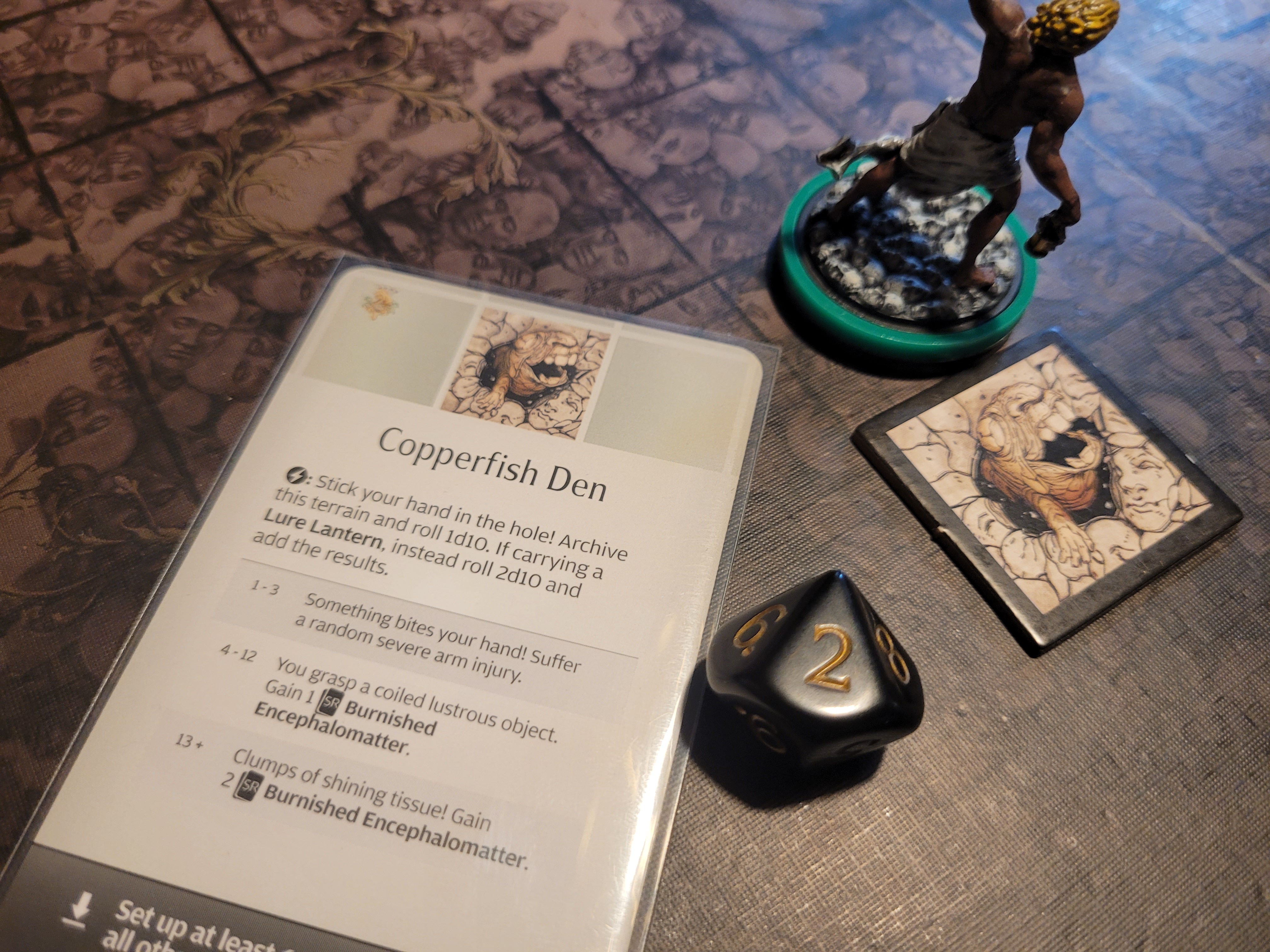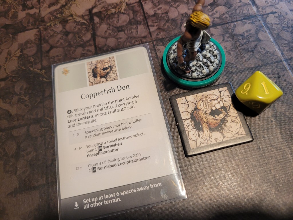 What started out quite decently in the first turn, quickly derailed as not only one of my survivors died to the Copperfish Den (T), but another fell to a Brain Trauma roll whilst virtually unharmed in the next monster turn after.