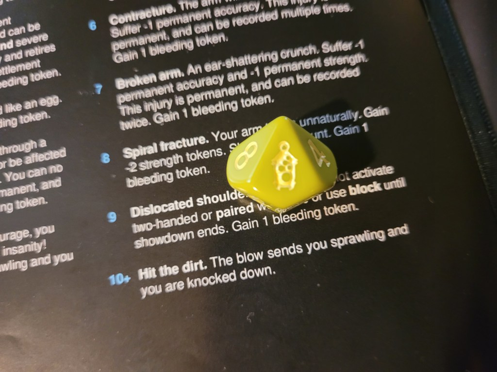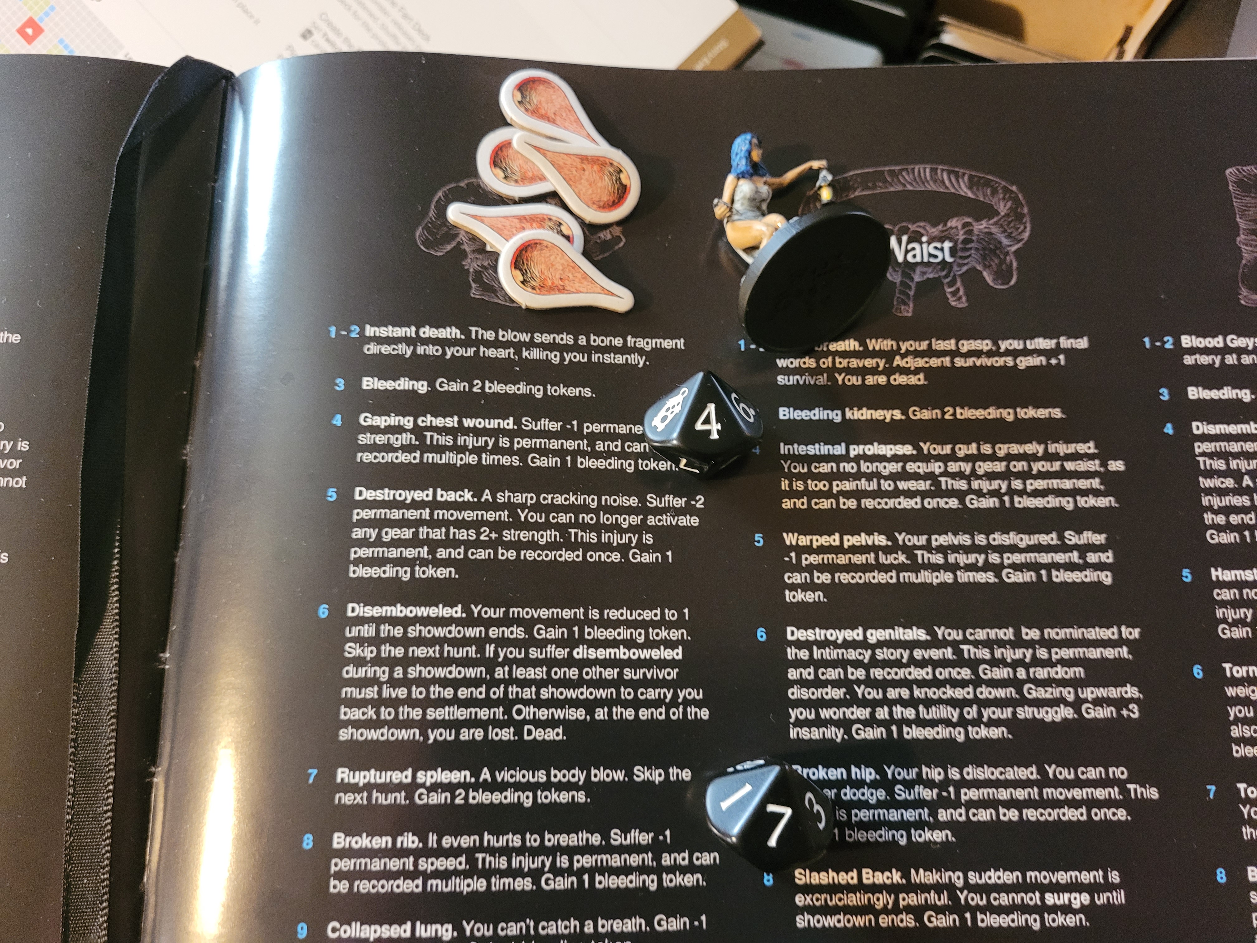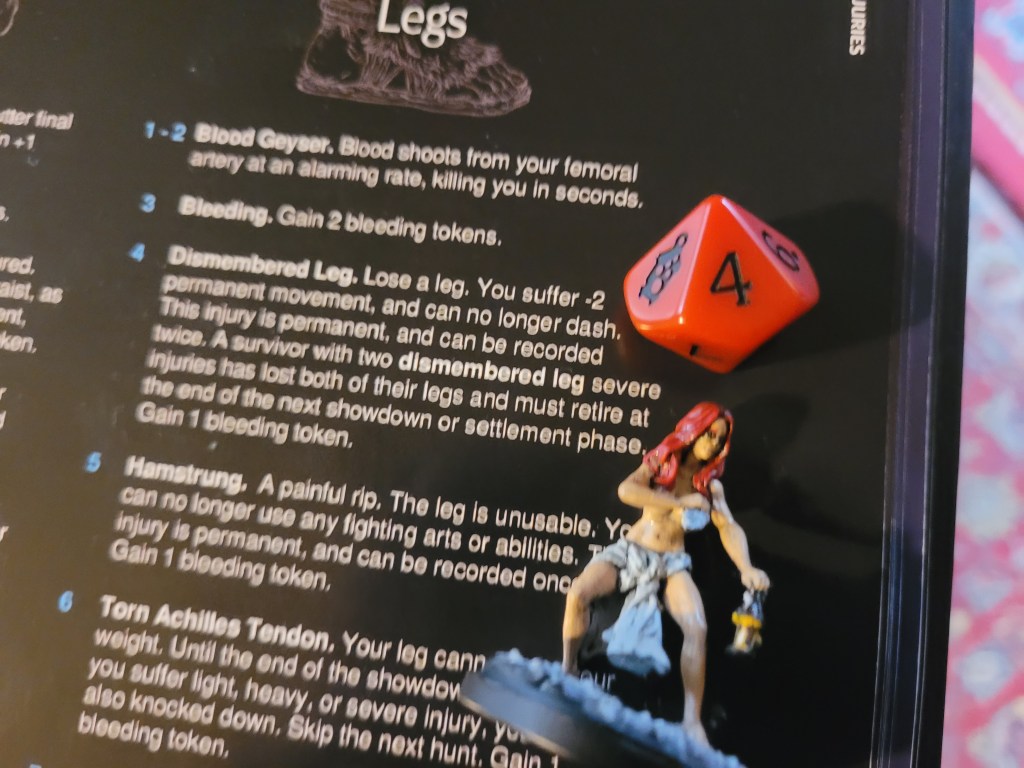 And then Ellaine suffered a severe leg injury – she rolled a 4 and was freshly down 2MOV and 1 leg. Of course this also frenzied her.
