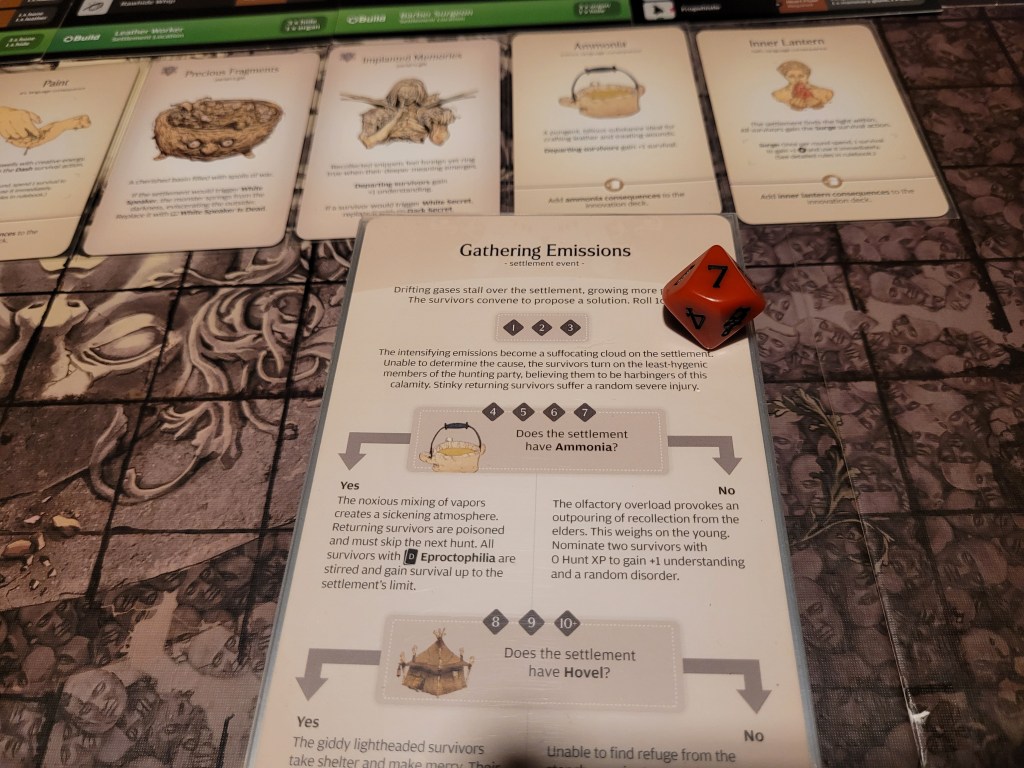 As always, the random settlement event came first: Gathering Emissions.