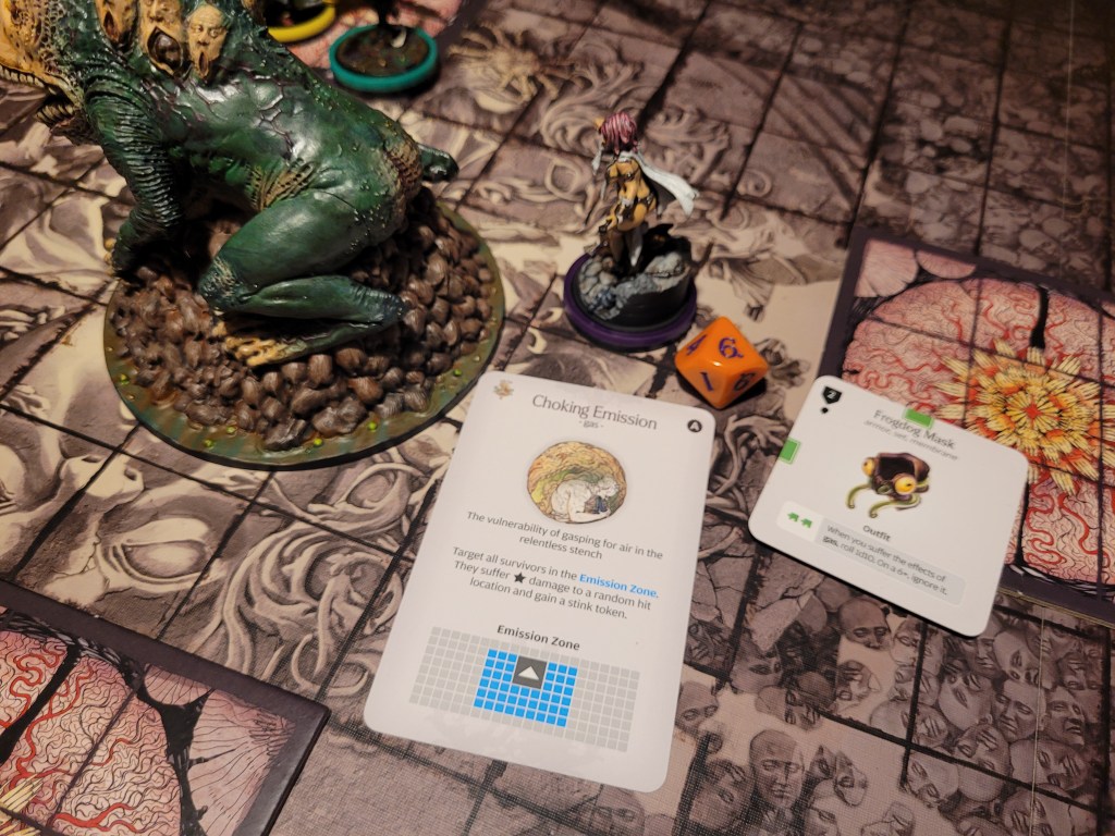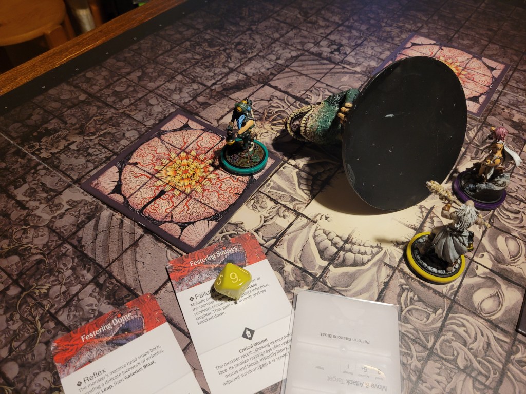 I also had the brilliant idea to move Candy over to the monster’s blindspot with a dash before our turn was over, hoping I could prevent it running over other survivors and to be ready to attack next round.