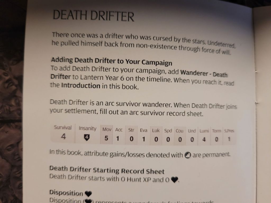 But for what its worth, the Death Drifter will always be a decent-at-worst Wanderer to encounter. One who has very little downsides and will teach your settlement his ways, if the survivors are able to learn and keep up.