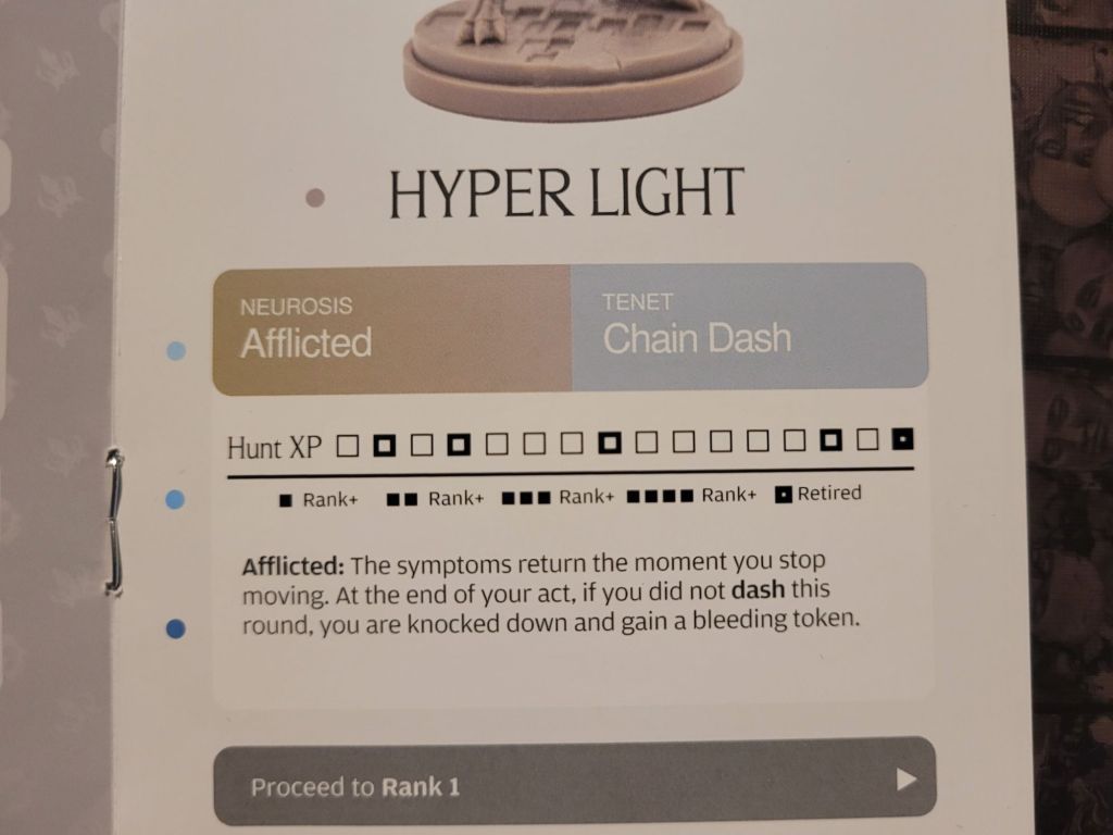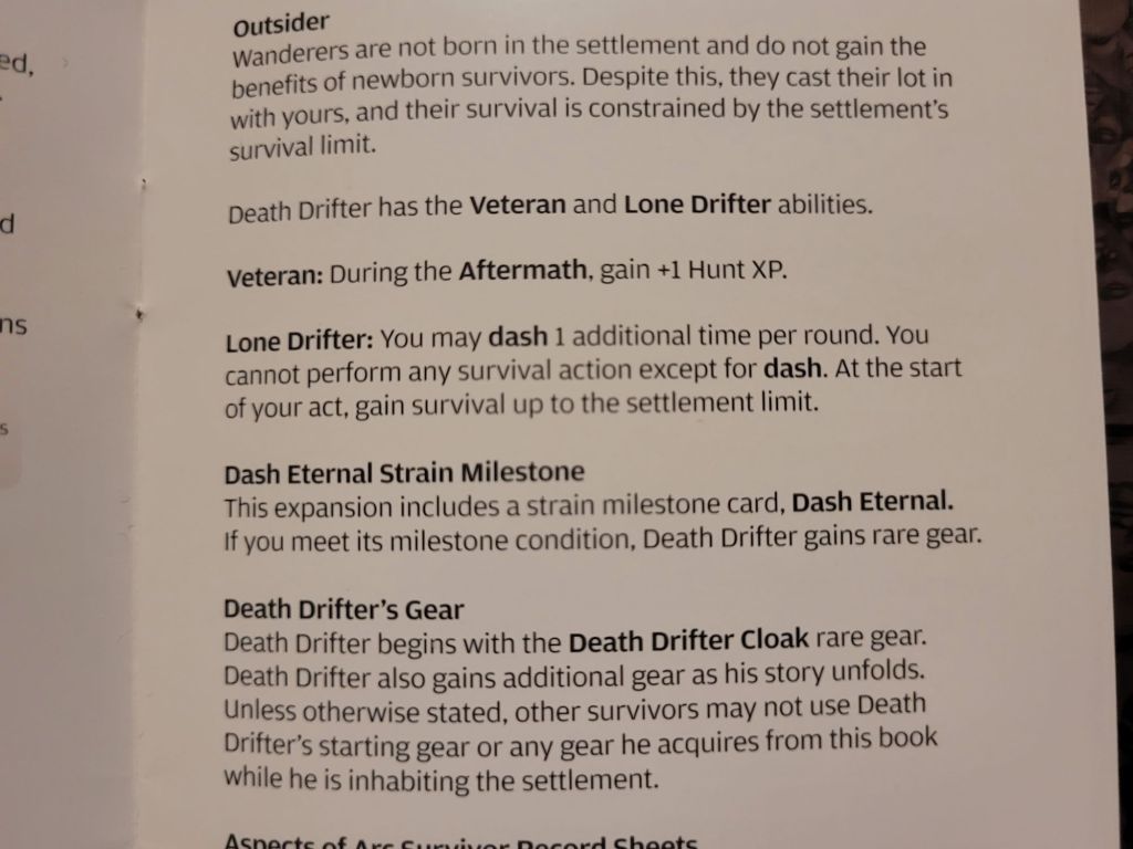 What starts out humbly, merely recording observations on performing a dash, has the Death Drifter eventually roll dice to see if he can get immediate extra dashes on 5+ that don’t count against round limits.