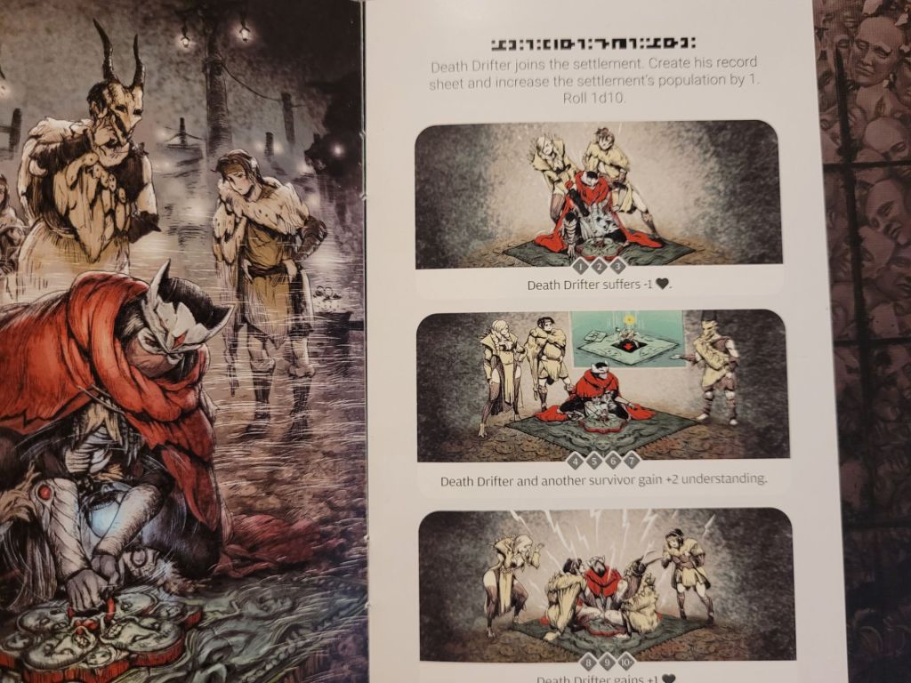 Because the Death Drifter does not speak the same language as the survivors (if he speaks at all?), all his event results are also presented with little pictures, rather than text blurbs.