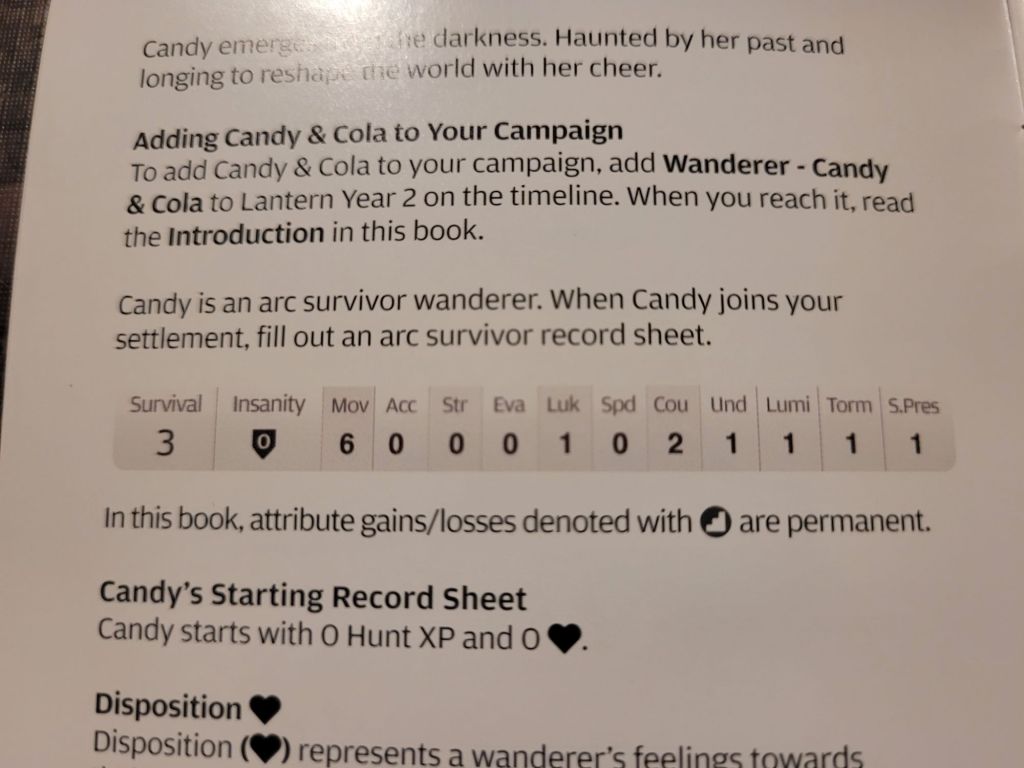 Whereas Goth and the Death Drifter each had their own personal milestones for courage and understanding, Candy has the same ones as your regular survivors and can thus gain some extra stats by rolling on Insight or Bold and she will also develop the related abilities like Tinker or Stalwart.